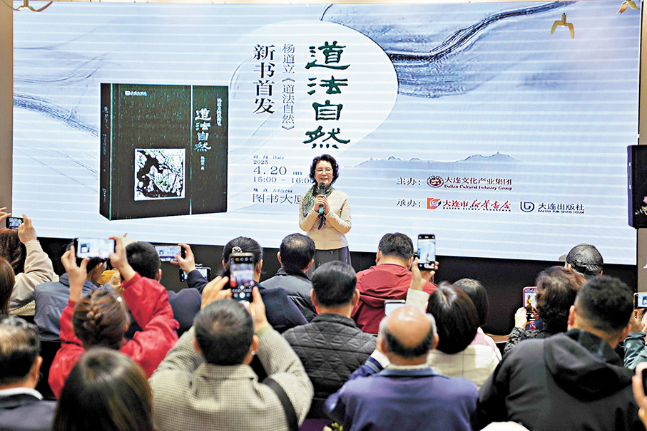 (香港文匯報記者 宋偉)「記錄心靈的踽踽獨行,與仰望星空一樣愜意。」近日,作家楊道立新書《道法自然》首發儀式在大連市新華書店舉行。作為一部隨筆集,《道法自然》與楊道立之前出版的《道亦有道》《得道則立》一脈相承,既是她對個人生活、社會活動的體悟,也承載其大道至簡、回歸本真的處世哲學。在接受香港文匯報獨家專訪時,楊道立坦言,心安讓她愈發曉得「自己的斤両」,凡安靜下來寫,就會進入「道法自然」的享樂境界。