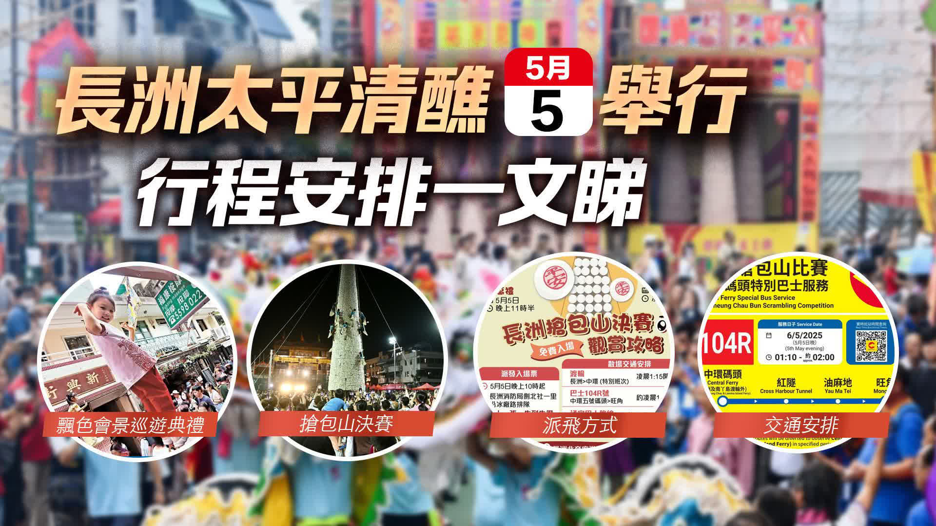 大公文匯全媒體報道,內地五一黃金周一連五天假期,大批內地旅客湧港,而一年一度的長洲太平清醮飄色會景巡遊及「搶包山決賽」今日(5月5日)舉行。新渡輪將特別加密中環往來長洲之渡輪班次。而搶包山比賽結束後,城巴將於5月6日(星期二)凌晨1時10分至凌晨約2時,特設104R號線,接載市民由中環碼頭返回九龍。
