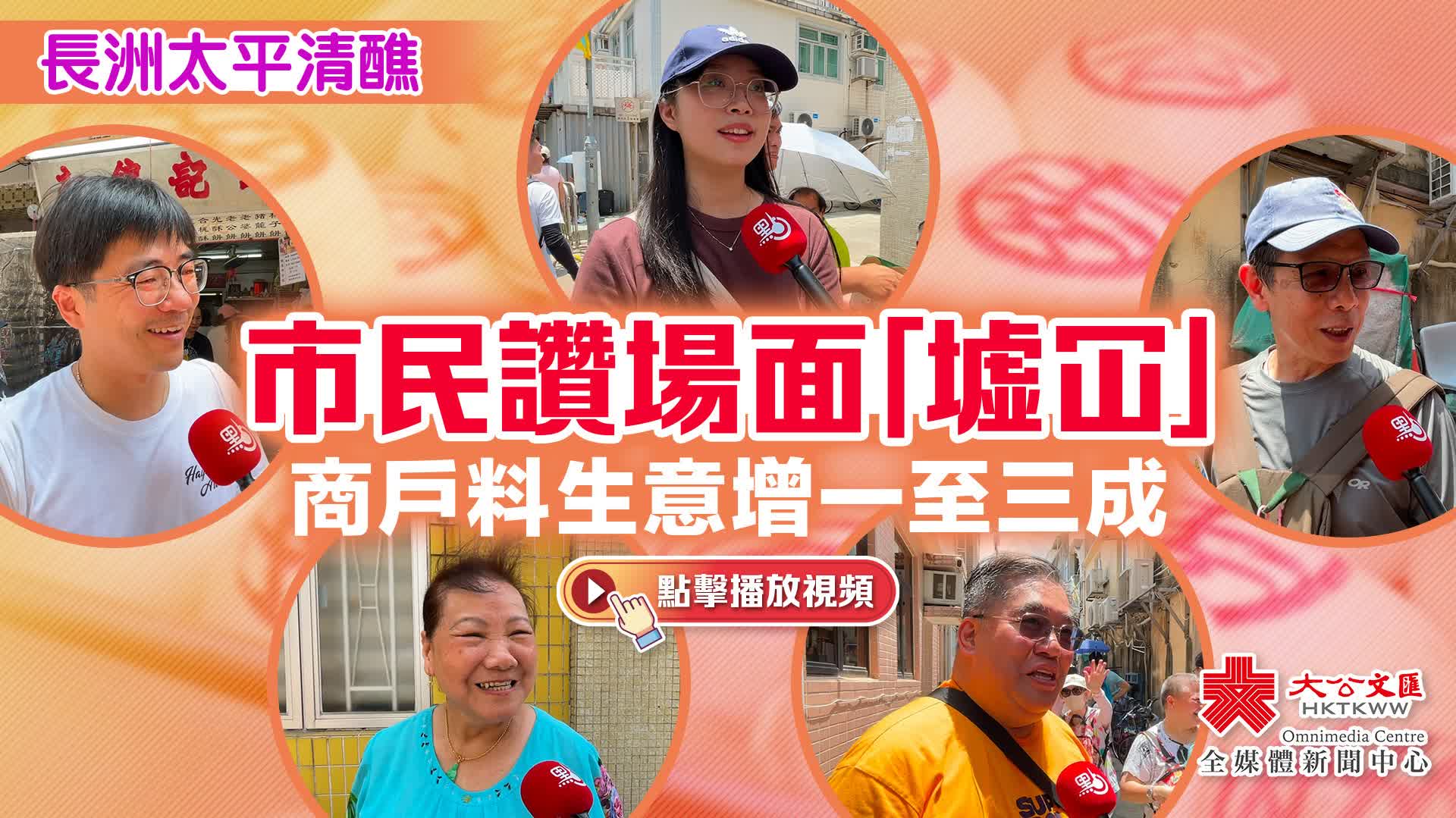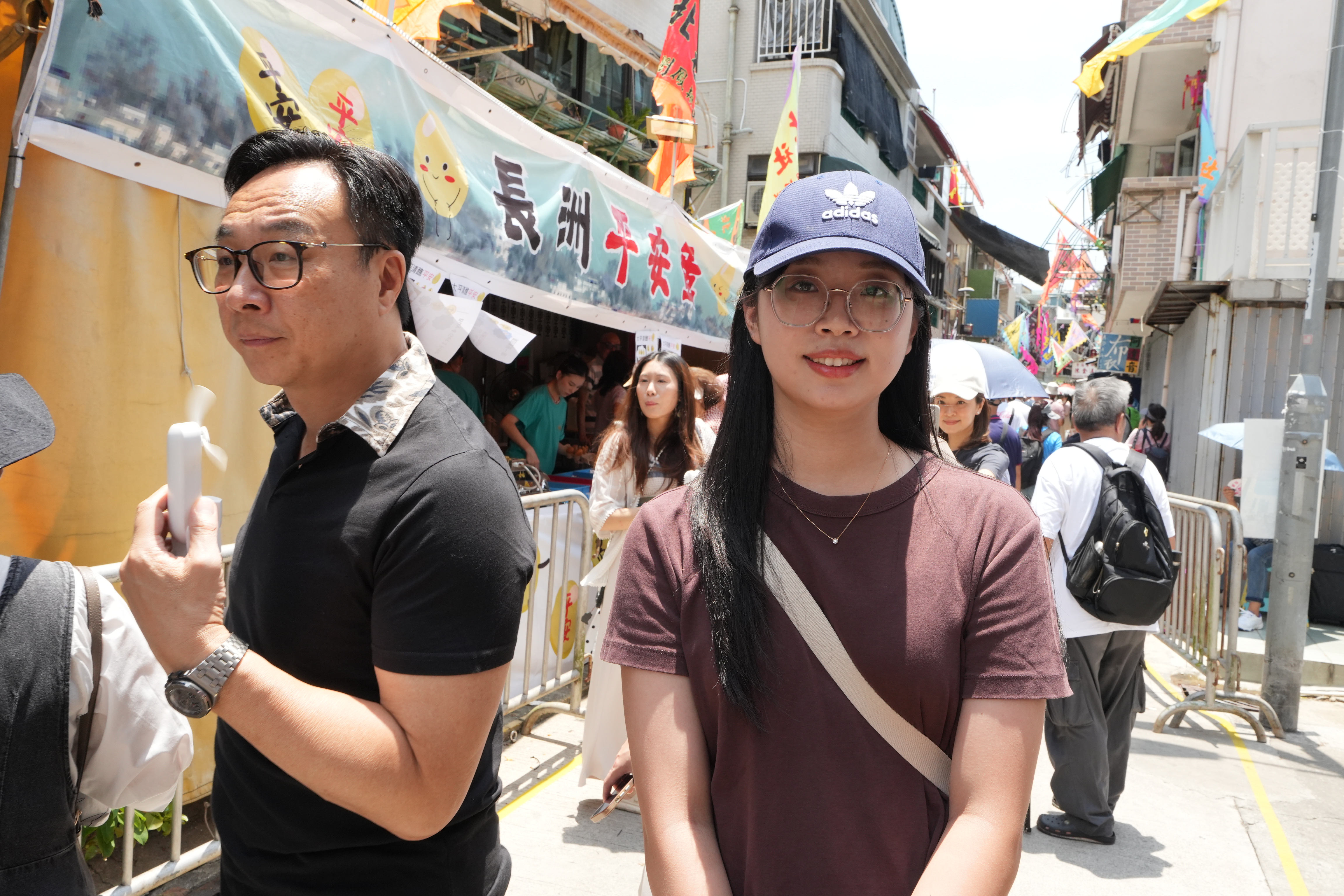 遊客方面,從事文創行業的陳小姐來自珠海,今日趁五一黃金周尾聲到長洲遊玩,計劃購買一些以平安為主題的文創產品,贈送給親朋好友。她形容太平清醮很有特色,令遊客見識到香港除了尖沙咀、維港等傳統景點以外的獨特一面,值得推廣。