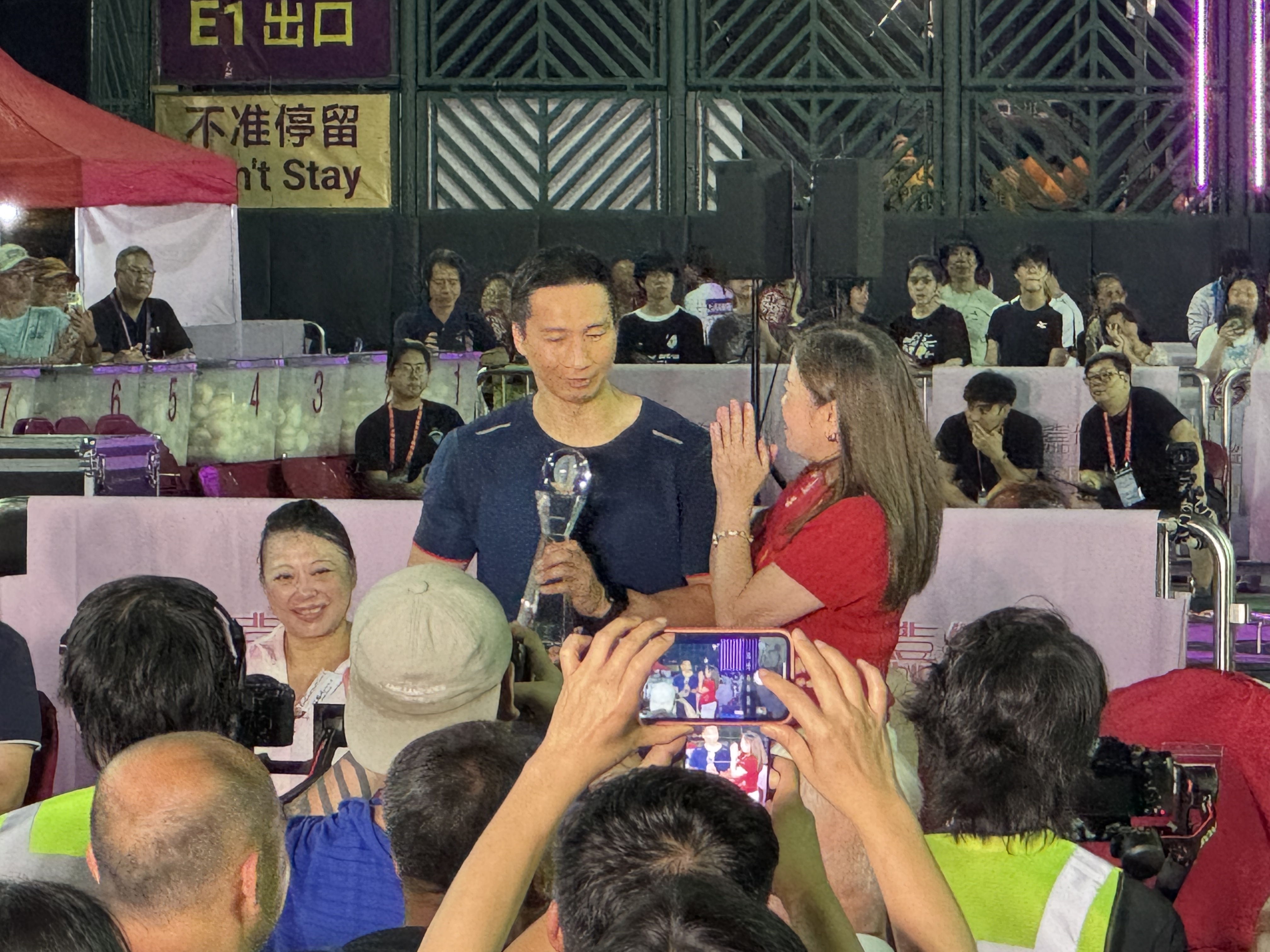 現場氣氛熱鬧又緊張,周圍觀眾為選手吶喊助威,舉起手機記錄下這場精彩的比賽。