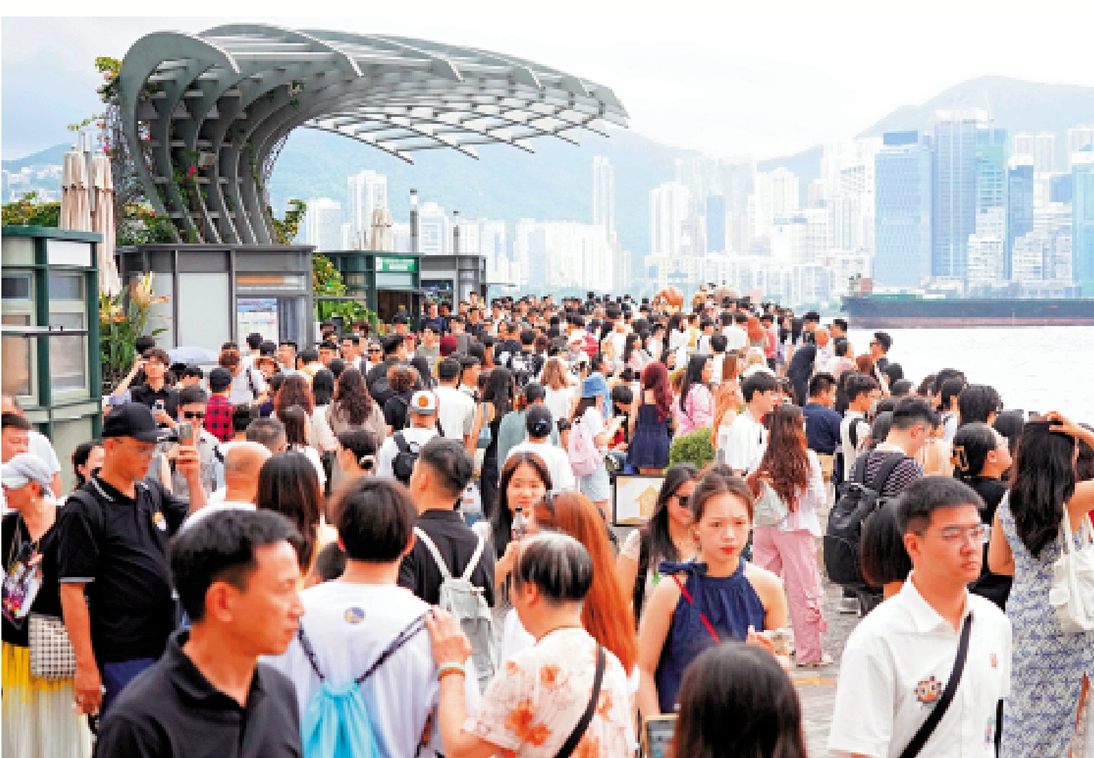 (大公報 記者 伍軒沛、易曉彤、賴振雄)今年五一黃金周,香港迎來了久違的滿街旅客,截至昨晚9時,五日累計約109.2萬人次旅客訪港,按年升近21%。然而,關口及多個熱門景點的接待配套一度瀕臨崩潰,影響旅客體驗,本港接待能力備受關注。