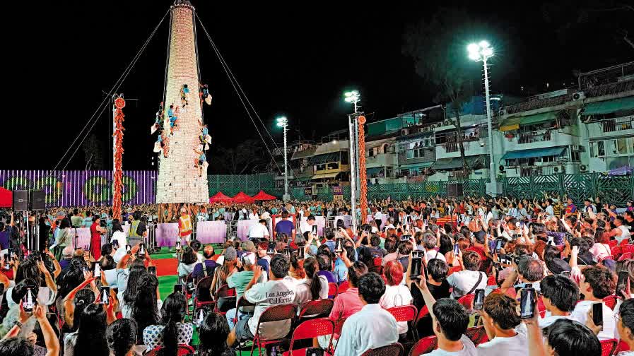 長洲太平清醮是香港最具代表性的節慶之一,飄色巡遊是其中的精華所在,結合了傳統工藝、宗教儀式和社區參與,展現香港漁村文化的獨特魅力。今年有20多台飄色,小童身着華麗服飾充當「色芯」,既扮演歷史或神話人物,也有反映時事的元素,東南亞詐騙營、本港公共醫療收費加價、調整兩元乘車優惠以及打破華語票房紀錄的《哪吒2》都成為其主題。飄色是全球罕見的表演形式,色彩繽紛的服飾、精緻的道具和充滿童趣的氛圍,讓不同文化背景者都能沉浸其中。