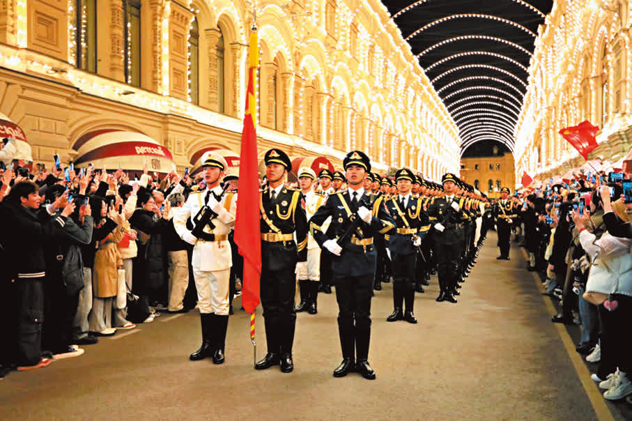 香港文匯報內地報道。「正義必勝!和平必勝!人民必勝!」莫斯科當地時間3日晚,紀念蘇聯偉大衛國戰爭勝利80周年閱兵活動舉行綵排,解放軍儀仗司禮大隊儀仗分隊精彩亮相,他們嘹亮的口號和整齊的步伐,贏得了現場民眾雷鳴般的喝彩聲,相關視頻也隨即在各大社交媒體刷屏。點擊閲讀詳情