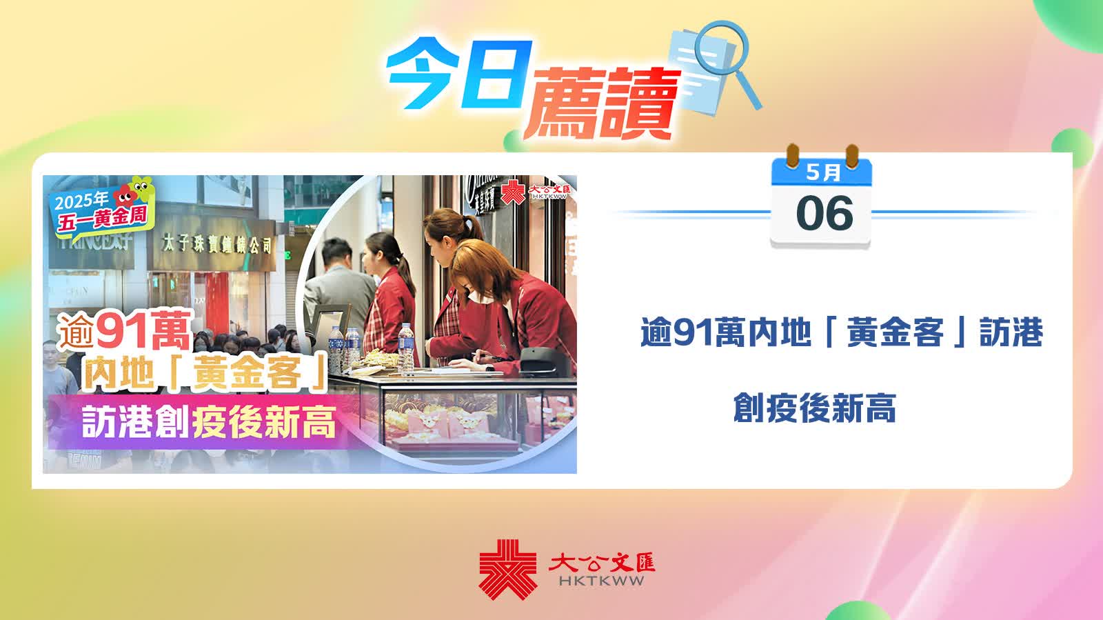 香港文匯報要聞。內地五一黃金周昨日結束,今年趁一連5天假期來港的內地旅客人數創疫後新高,截至昨晚9時,5天共錄得91.3萬內地旅客人次來港,超出去年5日76.6萬內地旅客的總和,且丁財兩旺,不少旅客趁昨日假期最後一天,離港前特意到尖沙咀購買金飾,有金舖昨晨未營業已有旅客排隊等候開門,珠寶金飾業界人士指今個黃金周生意額較去年同期升逾三成,零售、餐飲界均表示營業額較去年上升,化妝品及海味銷售亦有近三成升幅,形容對疲弱的零售市道是強心針。點擊閲讀詳情