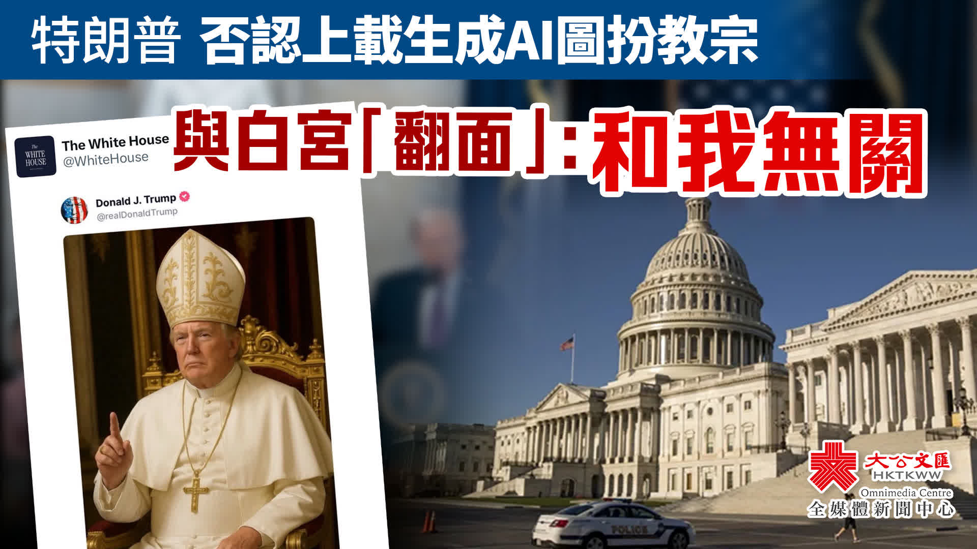 據紐約時報最新報道,在該圖片引發宗教界及網民強烈不滿後,特朗普突然和白宮「翻面」表示「白宮發出的這張AI圖和我無關」。「我跟這件事沒關係,」特朗普在橢圓形辦公室接受提問時說。「有人生成了一張我打扮成教宗的圖片,然後把它放到網上。那不是我幹的,我不知道它從哪裏來——也許是AI。但我不知道它是從哪裏來的。」