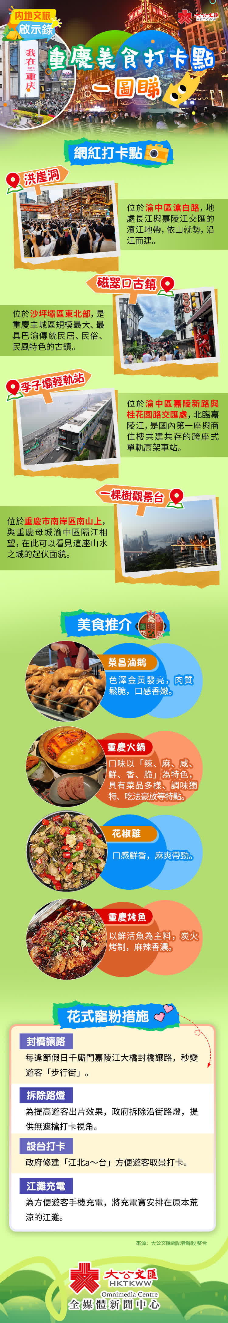 「為了讓我們拍洪崖洞,居然封了一座橋!」「為方便遊客吃滷鵝,連政府食堂都為我們開夥!」社交平台上,遊客們紛紛曬出重慶寵粉的暖心細節。