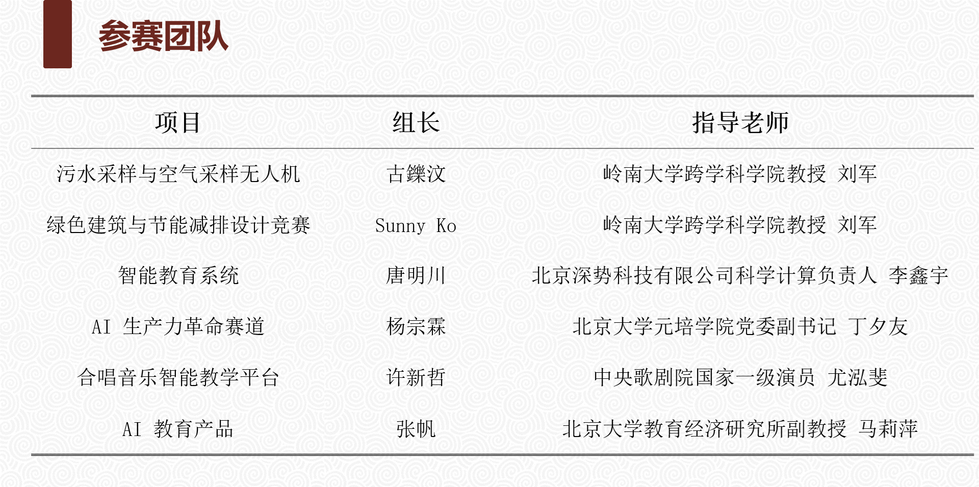 去年,暑期學苑在嶺大成功舉辦,今年的暑期學苑將於7月4日至12日在北大線下進行。本屆暑期學苑共錄取兩校40名優秀學生,組成六支參賽團隊,專業涵蓋人工智能、數據科學、心理學、醫學及哲學等。在指導老師、經驗豐富的企業家和頂尖科學家的幫助下,各參賽團隊將結合自己的產品制定可行的商業計劃,並參與最終的路演比賽。通過豐富的雙創訓練營課程、實踐挑戰與專家指導,本屆暑期學苑將進一步激發同學們的科研熱情與創新潛能,為未來投身科技前沿與社會服務積聚力量。