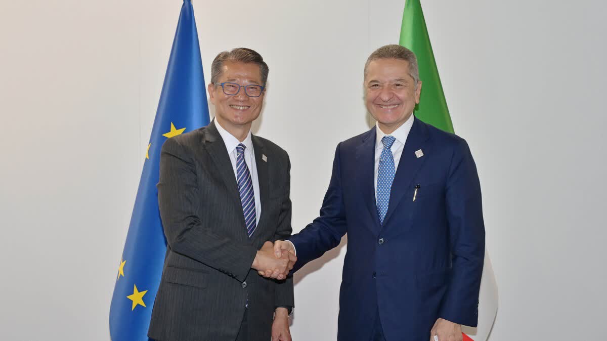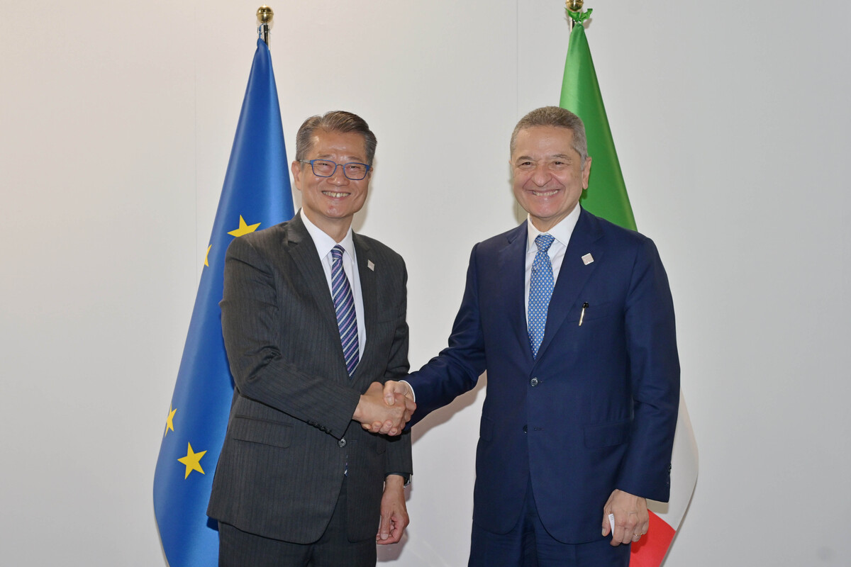 陳茂波昨日並與意大利銀行行長Fabio Panetta會面,向對方介紹香港最新的經貿和金融發展情況。雙方也就國際經濟形勢進行交流。