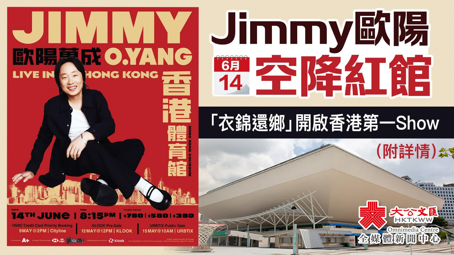今年3月,Jimmy曾現身香港,不僅獲邀出席「香港電影導演會周年晚宴暨年度頒獎典禮」,還有幸跟黃子華、周潤發等前輩見面,離港時他特別感謝周星馳,當時已預告或有機會來港開騷。時隔兩個月,Jimmy果然傳來好消息,定於6月14日降落紅館與香港觀眾首度見面!
