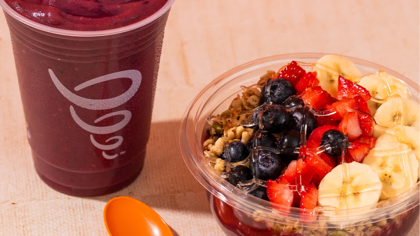 Jamba 專門提供外賣新鮮混合水果和蔬菜果昔及即製果昔碗