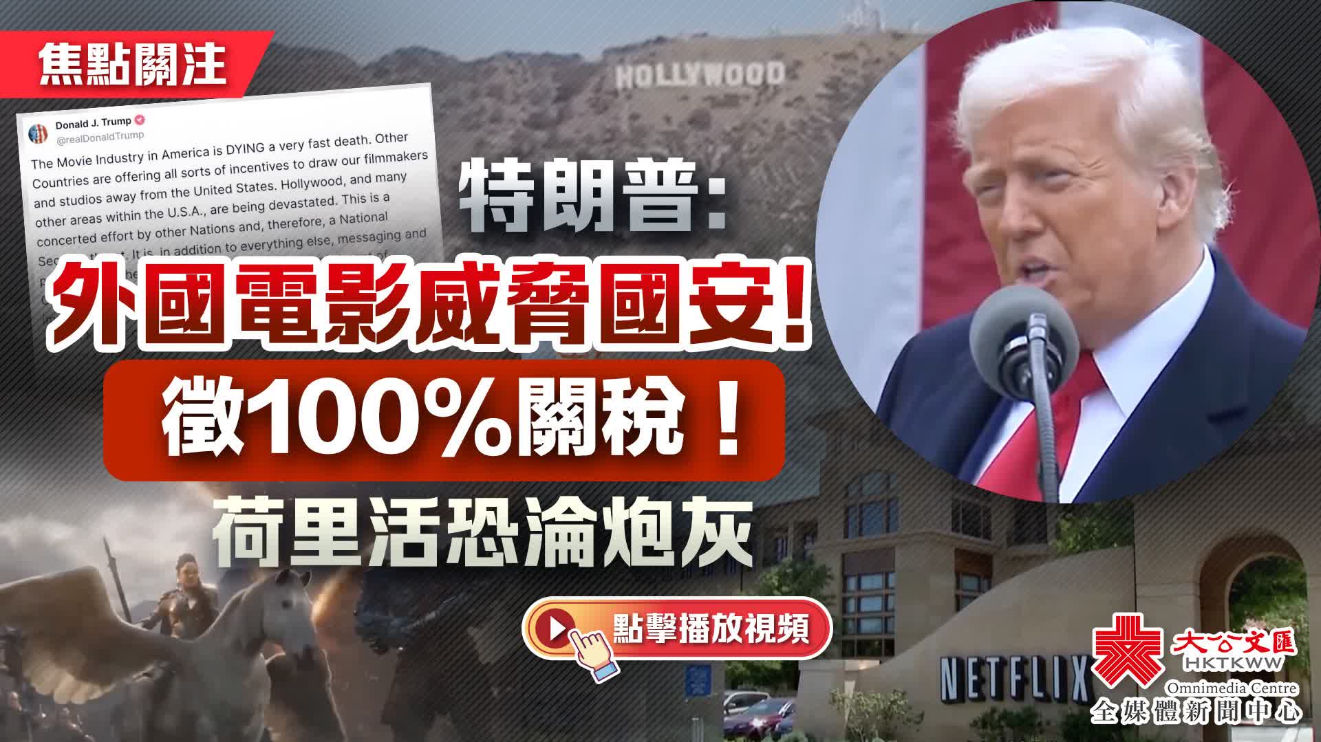 特朗普在社交平台Truth Social宣稱美國電影業正在迅速死亡,而他國透過獎勵措施,不斷吸引美國電影製作人與製片廠離開美國,導致荷里活(內地稱好萊塢)電影產量下降,並稱已對國安構成威脅,「如果他們不願意在美國國內拍電影,我們應該在這些電影進來時徵收關稅。」
