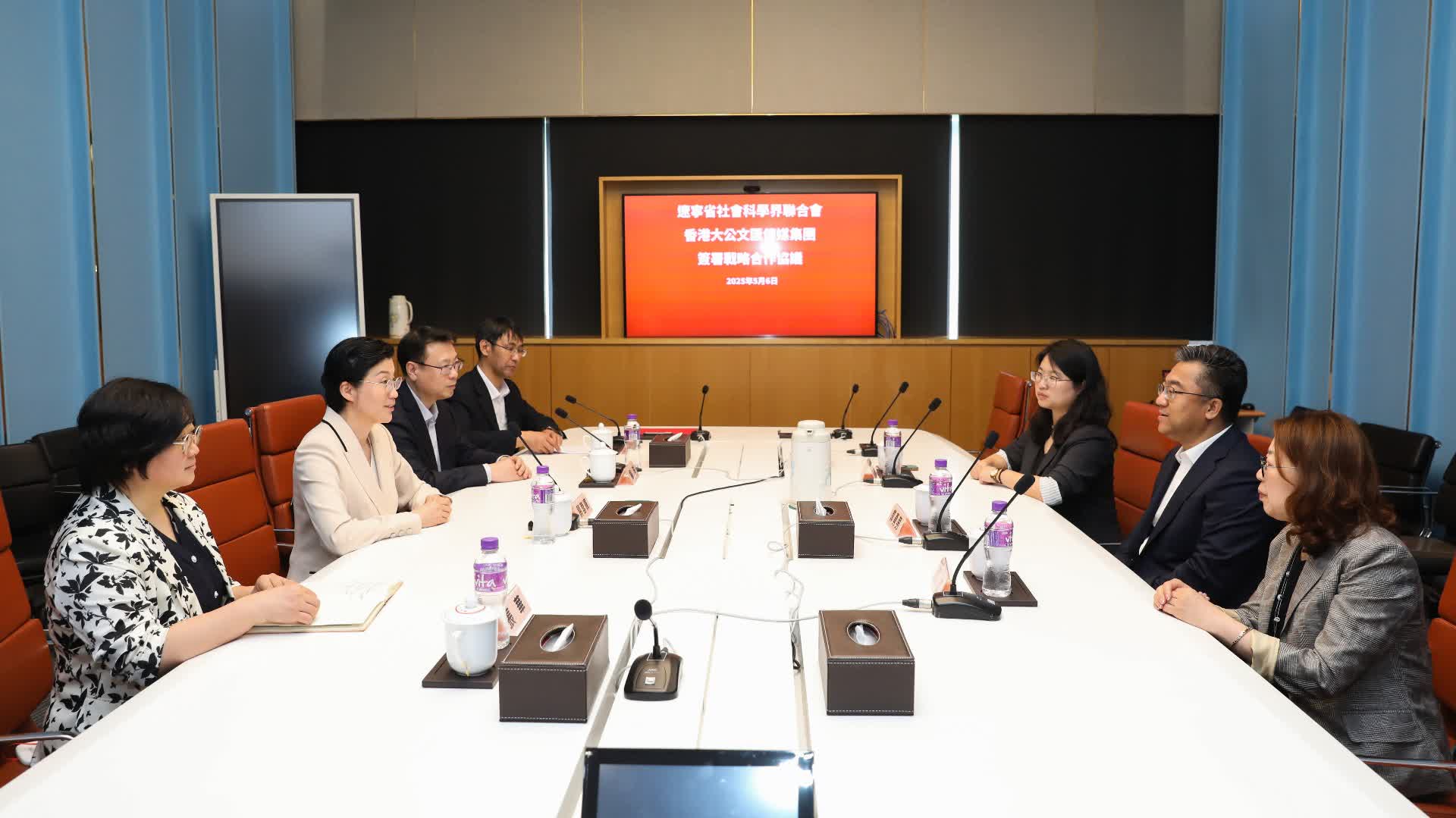 遼寧省社科聯一行4人今日下午在大文集團參觀報史館、全媒體中心,並與大文集團開展合作座談。根據雙方合作協議,未來大文集團將與遼寧省社科聯攜手探索設立遼寧與香港間社科領域的常態化機制,聚焦遼寧、香港優勢學科、重點領域的核心議題,打造權威活動品牌,對外講好遼寧社科故事。