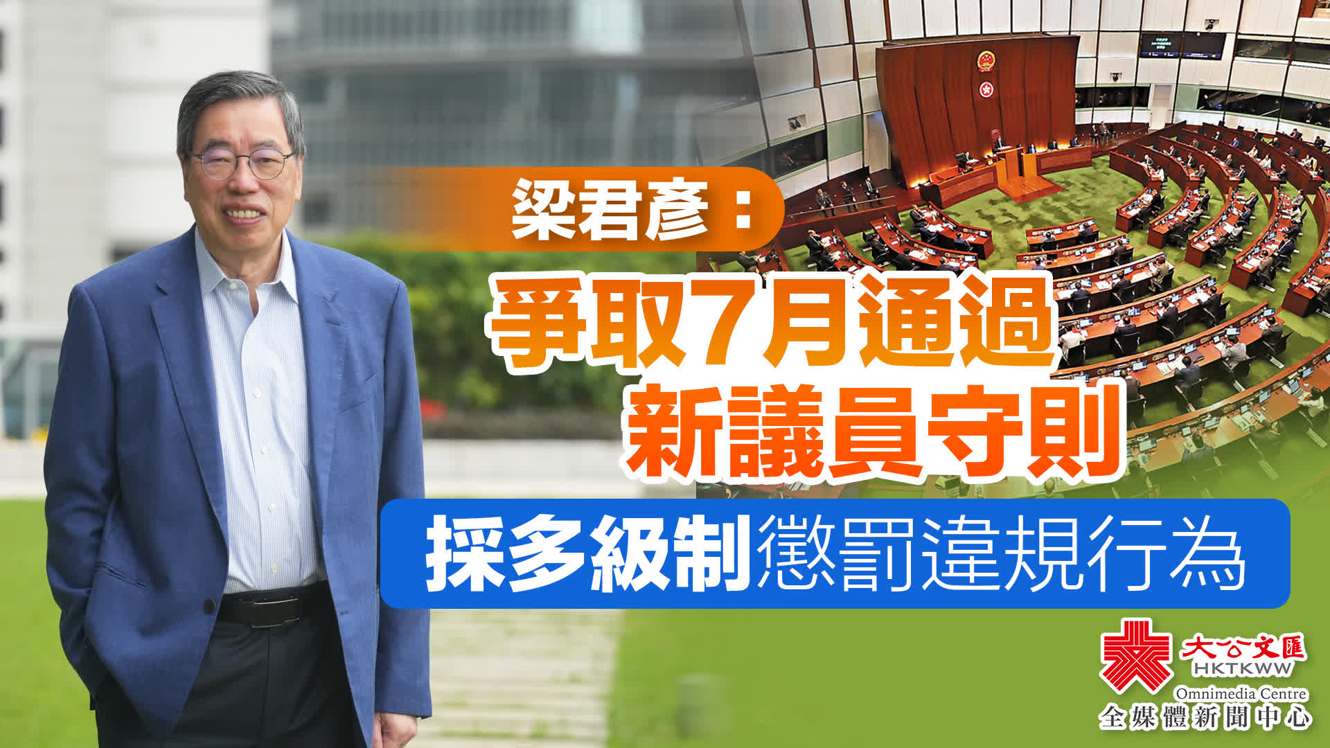 (大公文匯全媒體 記者 王俊傑)隨着現屆立法會任期年底結束,立法會正計劃制訂新的《立法會議員守則》,進一步完善議員監察制度。立法會主席梁君彥與傳媒茶敘時表示,新守則是總結以往經驗,方便議員日後有規可循,預計5月中可在立法會議事規則委員會通過,6月到內務委員會報告,爭取7月內完成修改《議事規則》及通過相關法例,當中包括第382章《立法會(權力及特權)條例》。