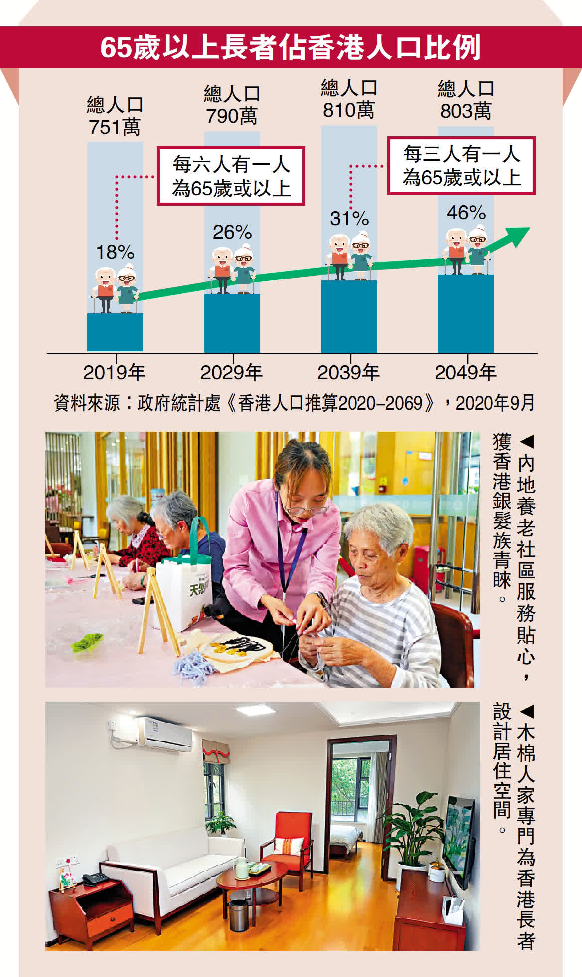 特區政府統計處數據顯示,2023年香港65歲以上人口已達157萬,佔總人口的21%,正式進入超高齡化社會。預計到2046年,老年人口比例將攀升至36%,老齡化程度將位居全球前列。面對這一嚴峻挑戰,中國太平旗下太平人壽(香港)充分發揮集團「保險+醫康養」生態圈優勢,推出「港人灣區養老太平方案」。