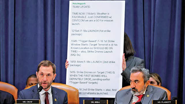 •今年3月,《大西洋》月刊總編輯戈德堡爆料稱,他被誤拉入特朗普政府高級官員在Signal聊天軟件上的群聊,海格塞斯在其中透露了敏感軍事信息。此後,「群聊門」醜聞持續發酵,海格塞斯被曝建立和參與了至少十幾個不同的群聊,討論包括美國軍事行動、五角大樓人事問題等敏感信息。在五角大樓調查洩密風險的過程中,國防部高級顧問考德威爾等3名官員被解僱,國防部發言人尤利奧特宣布辭職,海格塞斯的幕僚長卡斯帕離職。