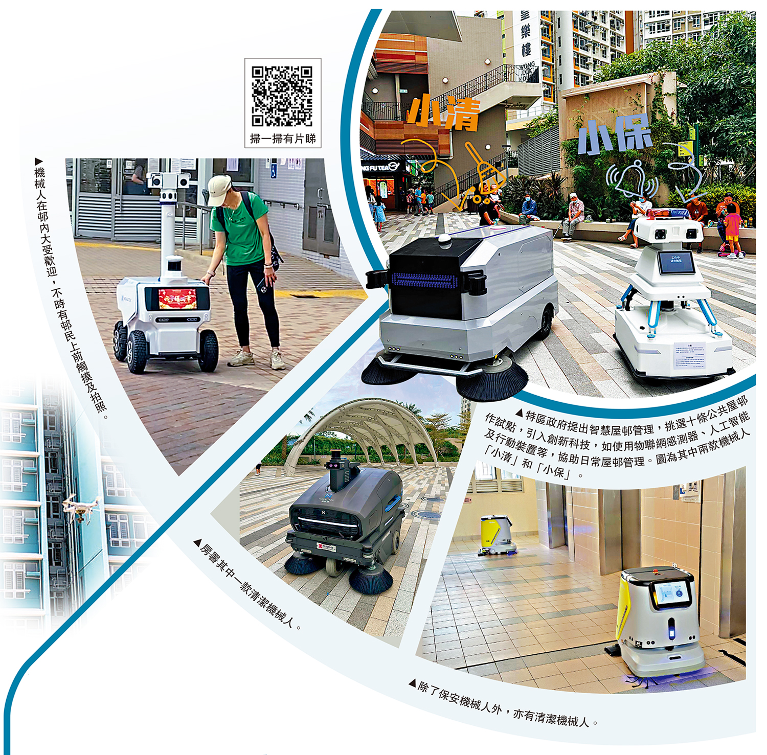 (大公報 記者 余風、蘇荣<文> 盧剛昌<圖> 盧剛昌、融媒組<視頻>)為提升居民生活品質注入新活力,機械保安員、機械清潔員已在公共屋邨當值。自2024年中起,香港房屋委員會挑選粉嶺皇后山邨、南區石排灣邨等十條公共屋邨作為試點,引入創新科技,涵蓋智能機械人、無人機、物聯網傳感器等,一場公共屋邨的智慧化變革悄然展開。