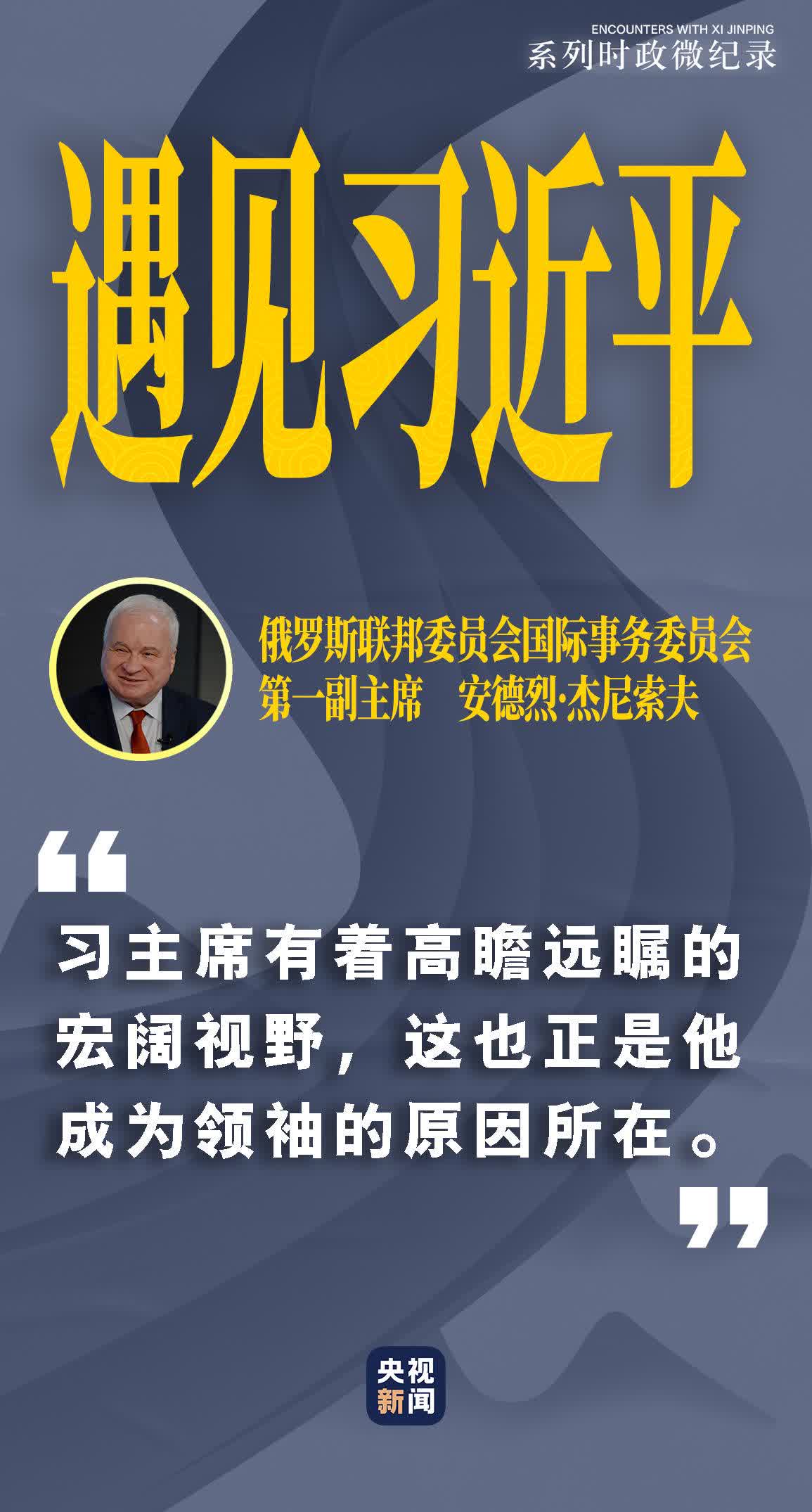 安德烈•傑尼索夫,俄羅斯聯邦委員會國際事務委員會第一副主席,2013年至2022年曾任俄羅斯駐華大使。在他看來,「中國制定了到2035年和2049年遠景目標,世界上沒有其他國家制定如此長遠的發展規劃,習主席有着高瞻遠矚的宏闊視野,這也正是他成為領袖的原因所在。」
