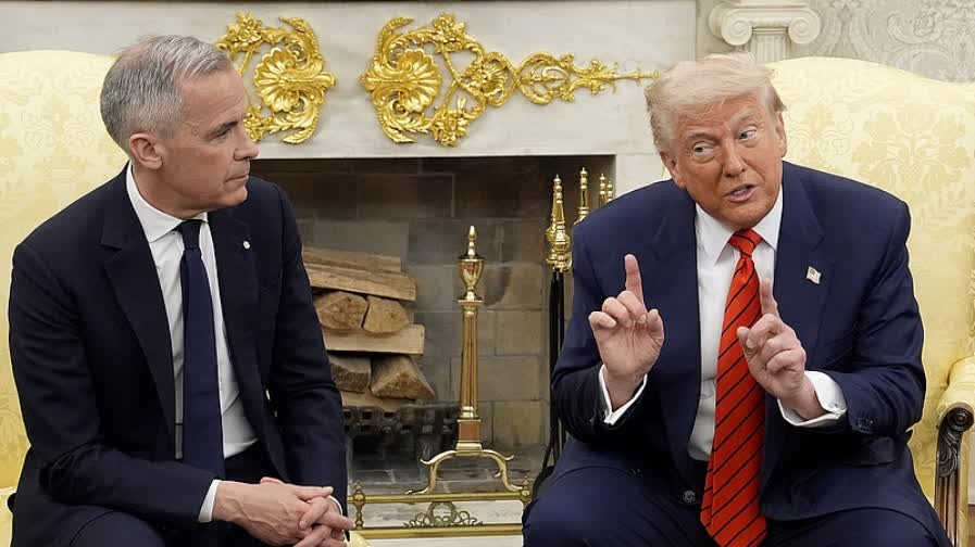 在回答現場記者提問時,特朗普當着卡尼的面再提有關「美國吞併加拿大」一事。卡尼當場表示「加拿大是非賣品」。