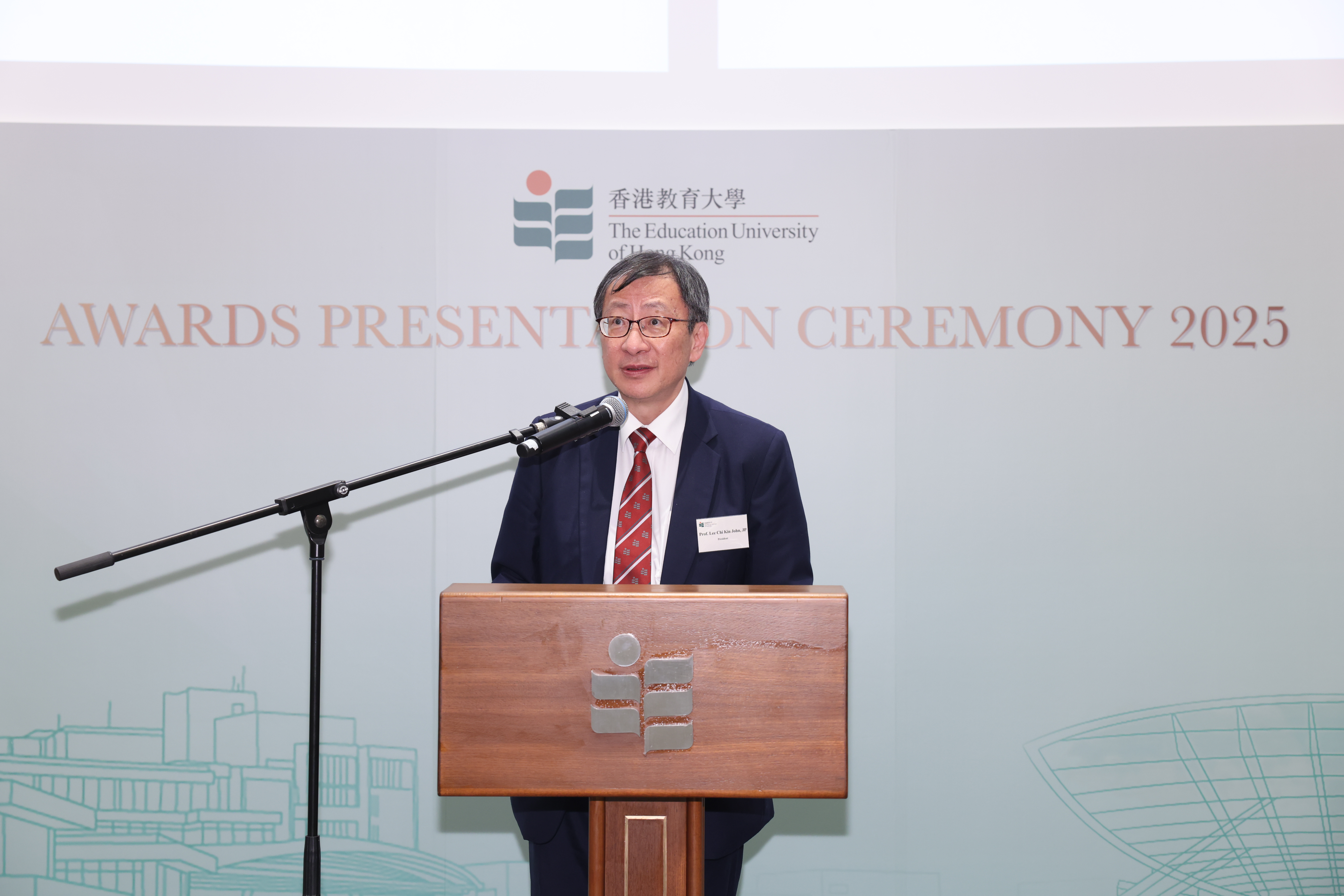 李子建教授在致辭時提到,去年30周年校慶之後學校邁入了新的發展階段,大學2025-2031的策略發展計劃著重推動教育未來的發展。他特別感謝獎學金贊助人的慷慨捐贈及老師們的無私奉獻,同時肯定獲獎同學所展現出的勤勉努力、服務精神、卓越才華和領導力。他說:「你們已經證明自己不僅是明天的領導者,更是今天的變革者。這些獎項和獎學金不僅是對你們過去成就的認可,更是對你們未來潛力的信任。無論你的夢想為何,請繼續在你擅長的領域中發光發熱,展示大學所傳授的誠信、創新和服務的價值觀,為社會作出更大的貢獻。」