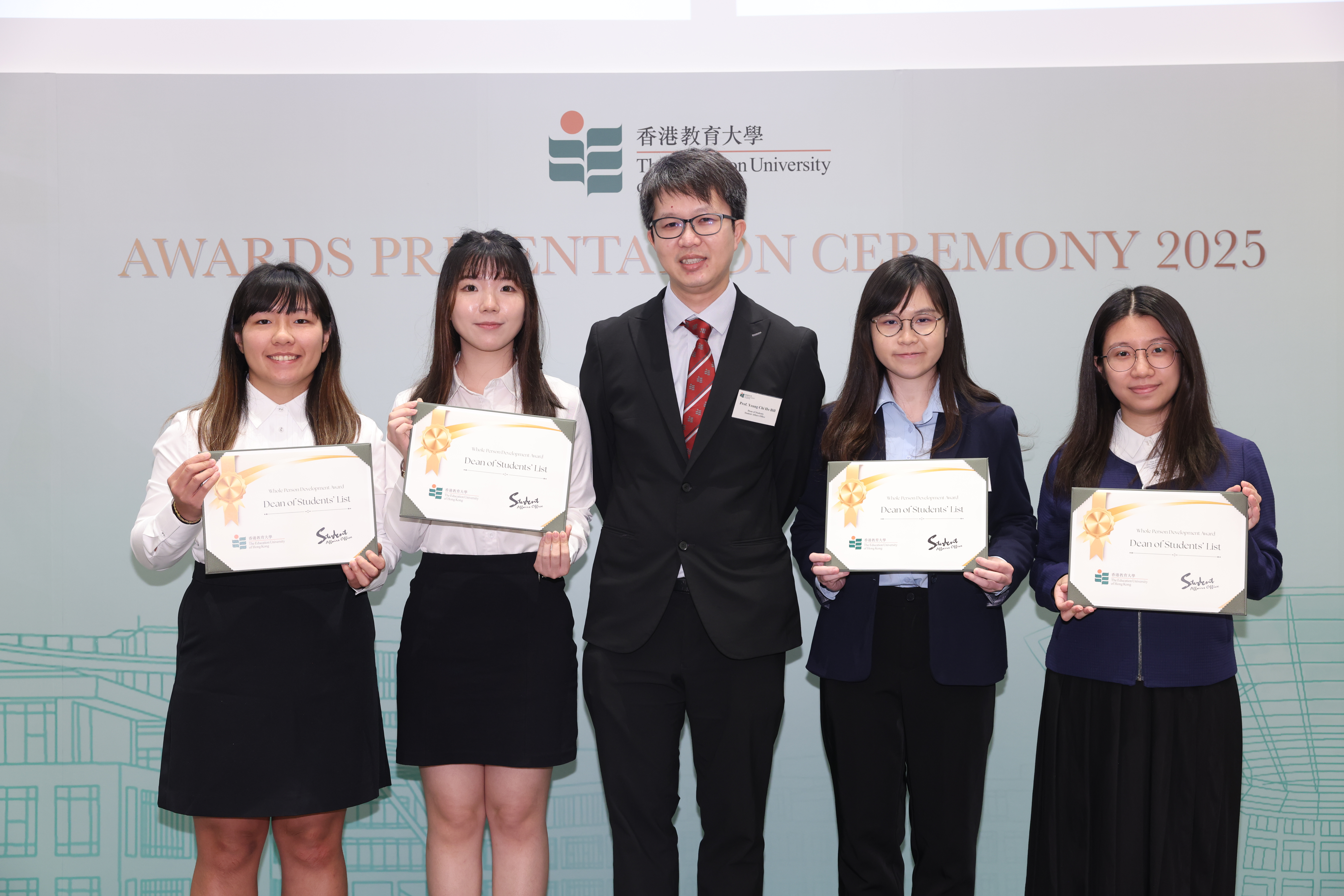 隨後,教大亦向五名學生頒發「全人發展獎項 – 學生事務長嘉許狀」。
