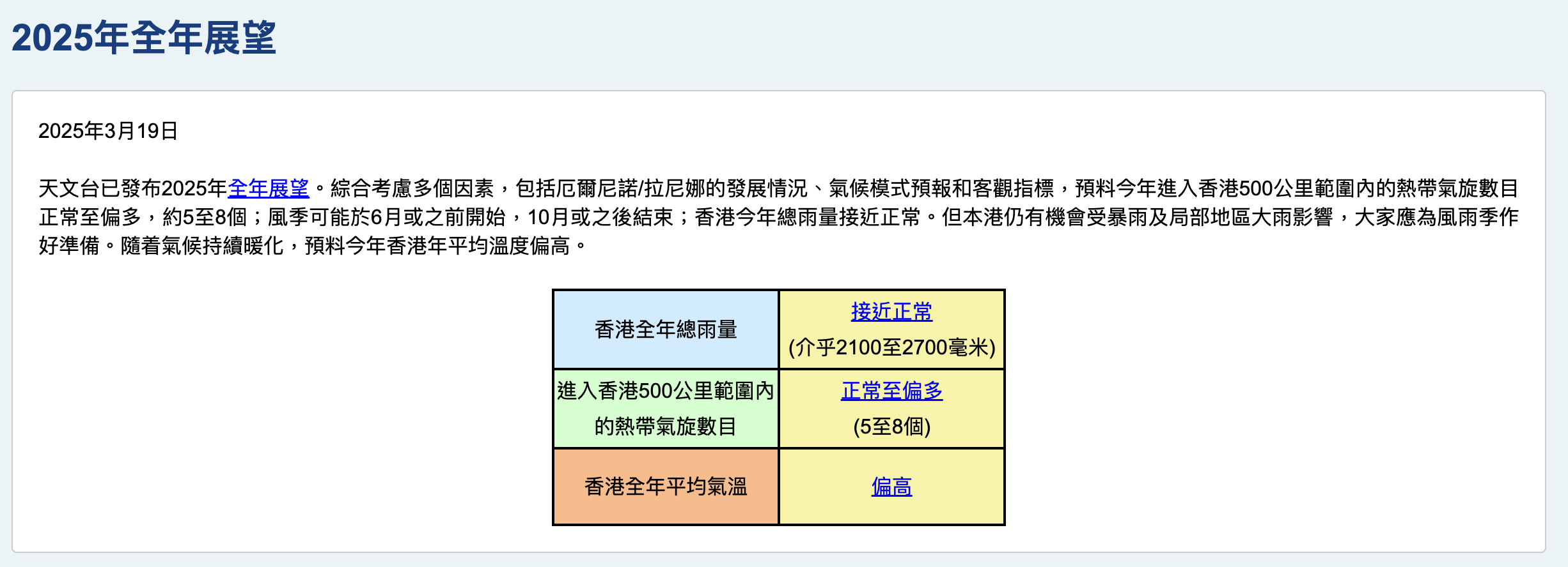 根據香港天文台的預測,預計今年會有5至8個熱帶氣旋襲港,而風季可能於6月或之前開始,10月或之後結束。為做好充足及全面的準備,來自約40個政策局、部門及其他相關機構的代表參與今年的演習。