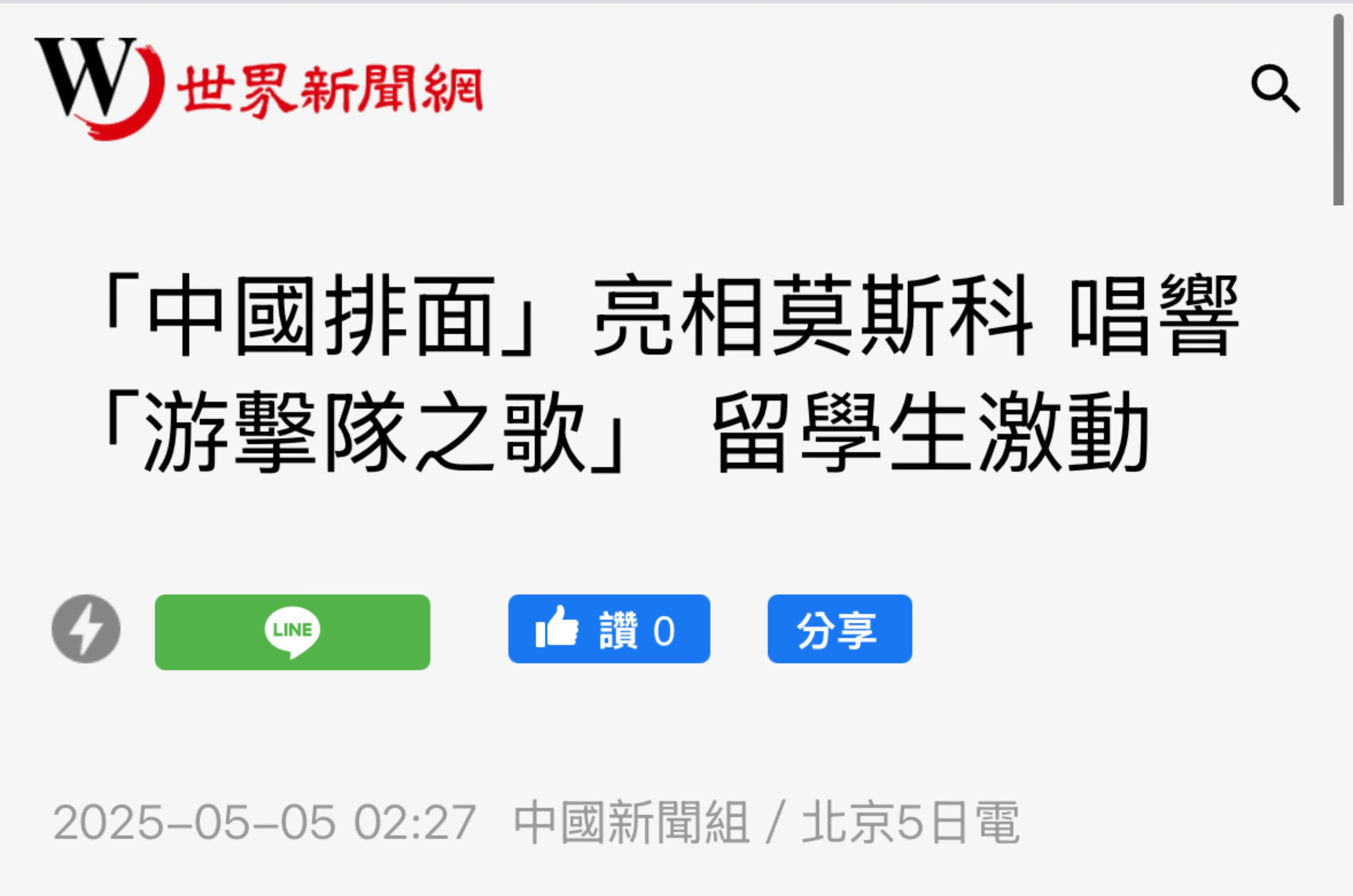 近日,「中國排面」亮相莫斯科,紅場夜間閱兵綵排吸引了大批當地中國留學生和華人同胞。人們揮舞國旗,和解放軍儀仗隊官兵齊唱《強軍戰歌》《歌唱祖國》的「高燃」場面給大家留下深刻印象,也引發了島內輿論的熱議。