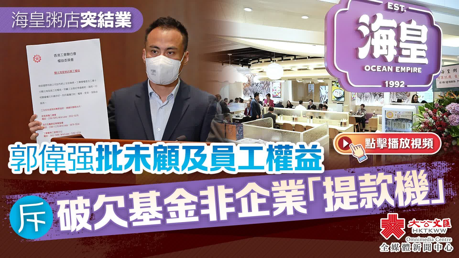 郭偉强指出,海皇粥店的業務規模已從高峰期約30間分店縮減至結業前的7間,顯示其早已知悉財務困難。然而,該企業直至最後一刻才宣布結業,並要求員工申請破欠基金以追討欠薪、代通知金等,實為不負責任的行為,應予以譴責。