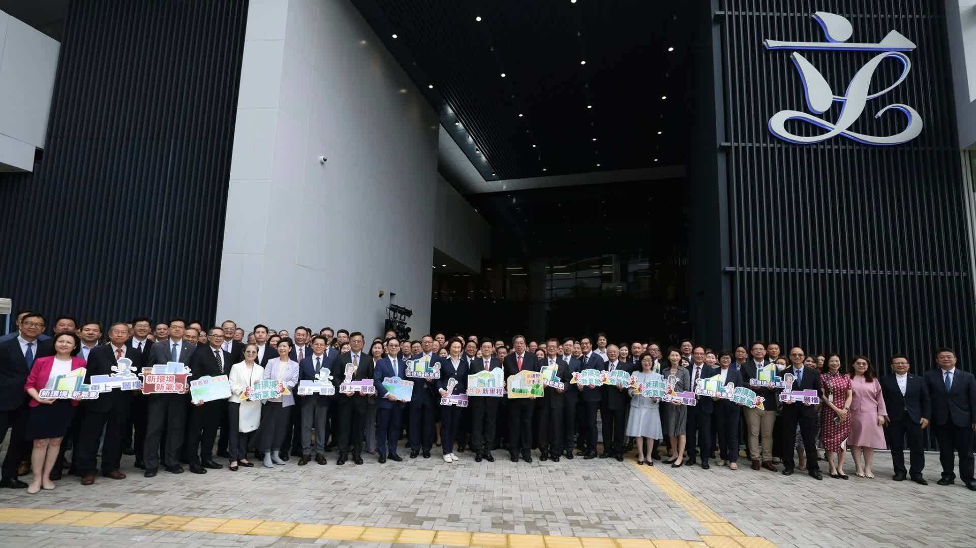 大公文匯全媒體報道,立法會今日(8日)舉行綜合大樓擴建主體工程竣工儀式,行政長官李家超出席,並與立法會主席梁君彥共同為大樓主入口外牆的「立」字徽號主持亮燈儀式。他表示,這是香港第一個在原有公共建築物上採用組裝合成法進行擴建的項目,「立」字徽號的亮燈,更象徵立法會發光發亮、多元共融 ,與政府繼續攜手合作,為香港實現良政善治共同努力。