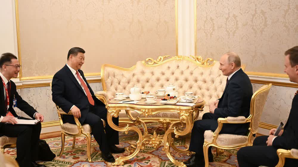 據央視新聞報道,當地時間5月8日下午,俄羅斯總統普京同中國國家主席習近平在克里姆林宮總統辦公室進行茶敘。