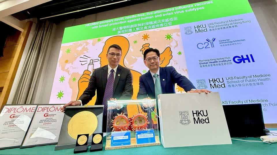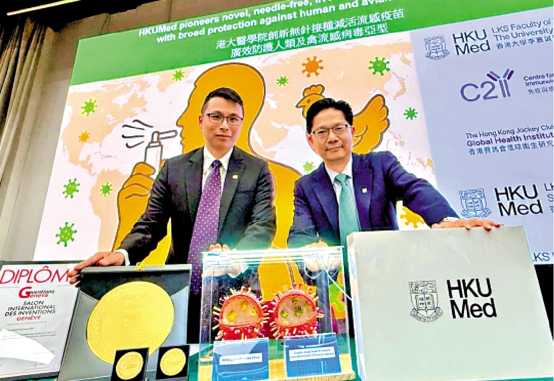(大公報記者 郭如佳)流感疫苗或不需要再「年年打」。港大醫學院昨日宣布,該院夥同免疫與感染研究中心合作,在開發具有廣效防護的減活疫苗方面取得重大突破,有望研發一款新型噴鼻式疫苗,且能同時抵禦各種流感病毒亞型免疫反應,包括人類及禽流感病毒,包括人類病毒H1N1、H3N2、及禽流感病毒等。