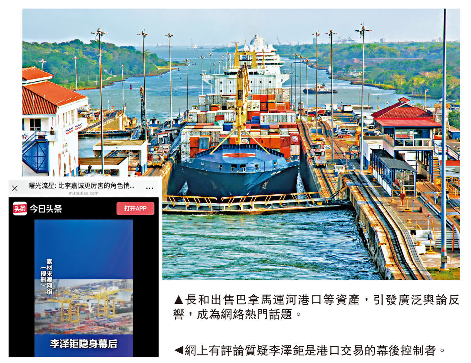 大公報要聞。長江和記集團3月宣布向美國貝萊德財團出售巴拿馬運河港口等資產,引發廣泛輿論反響,成為網絡熱門話題。網民紛紛表示,沒有國哪有家,企業家應有家國情懷。一旦交易中的港口落入美國人手中,必將損害國家利益和國家安全。點擊閲讀詳情