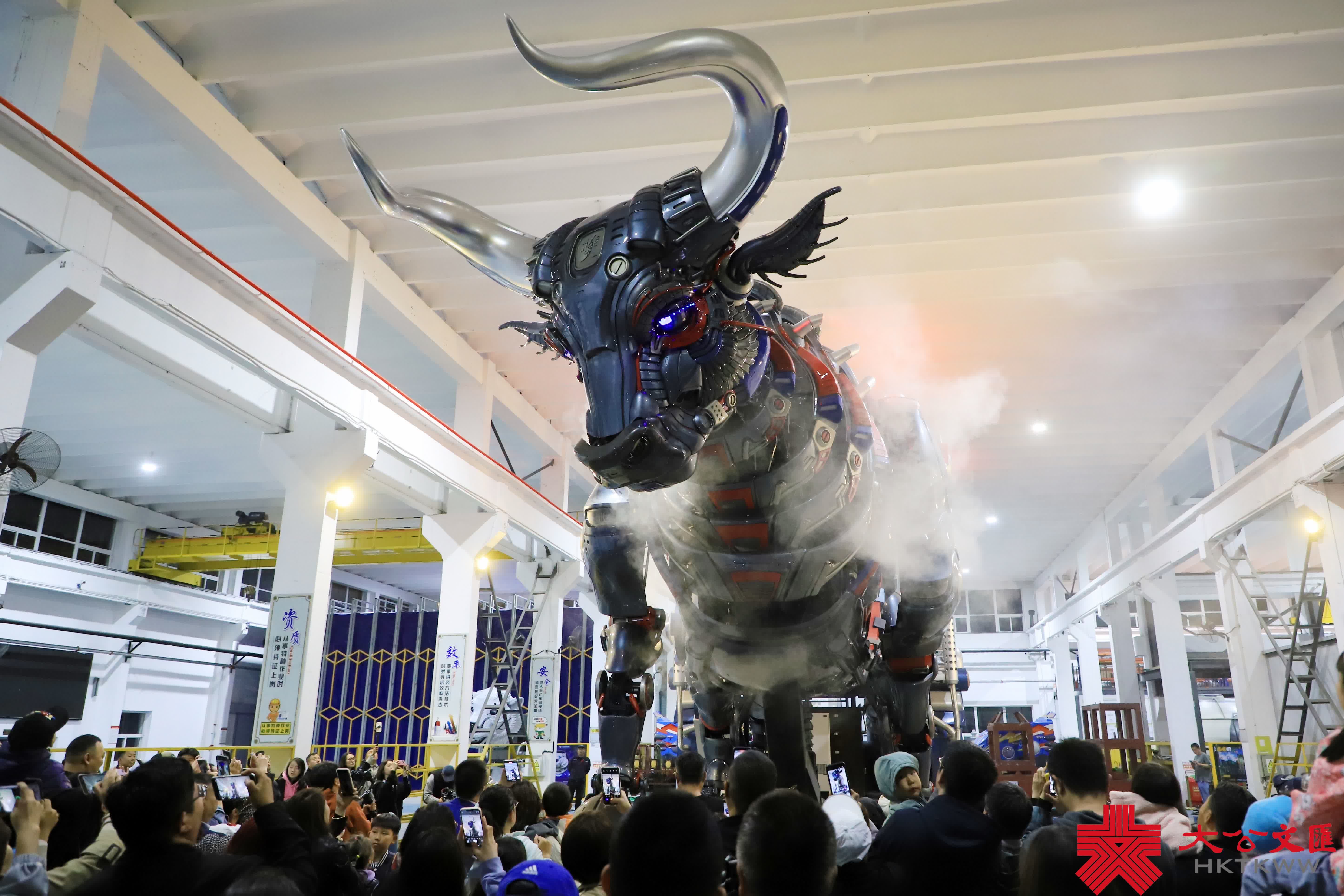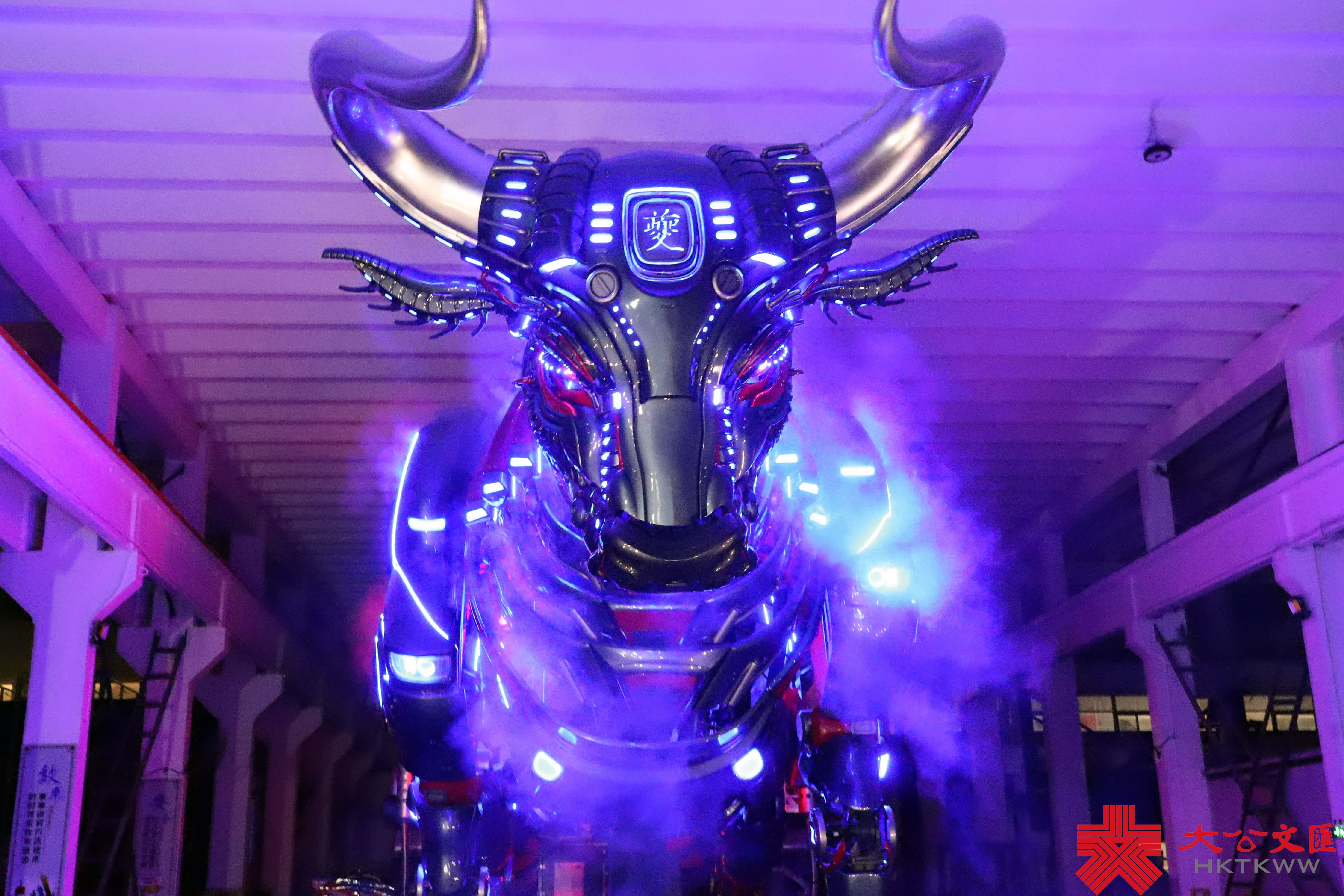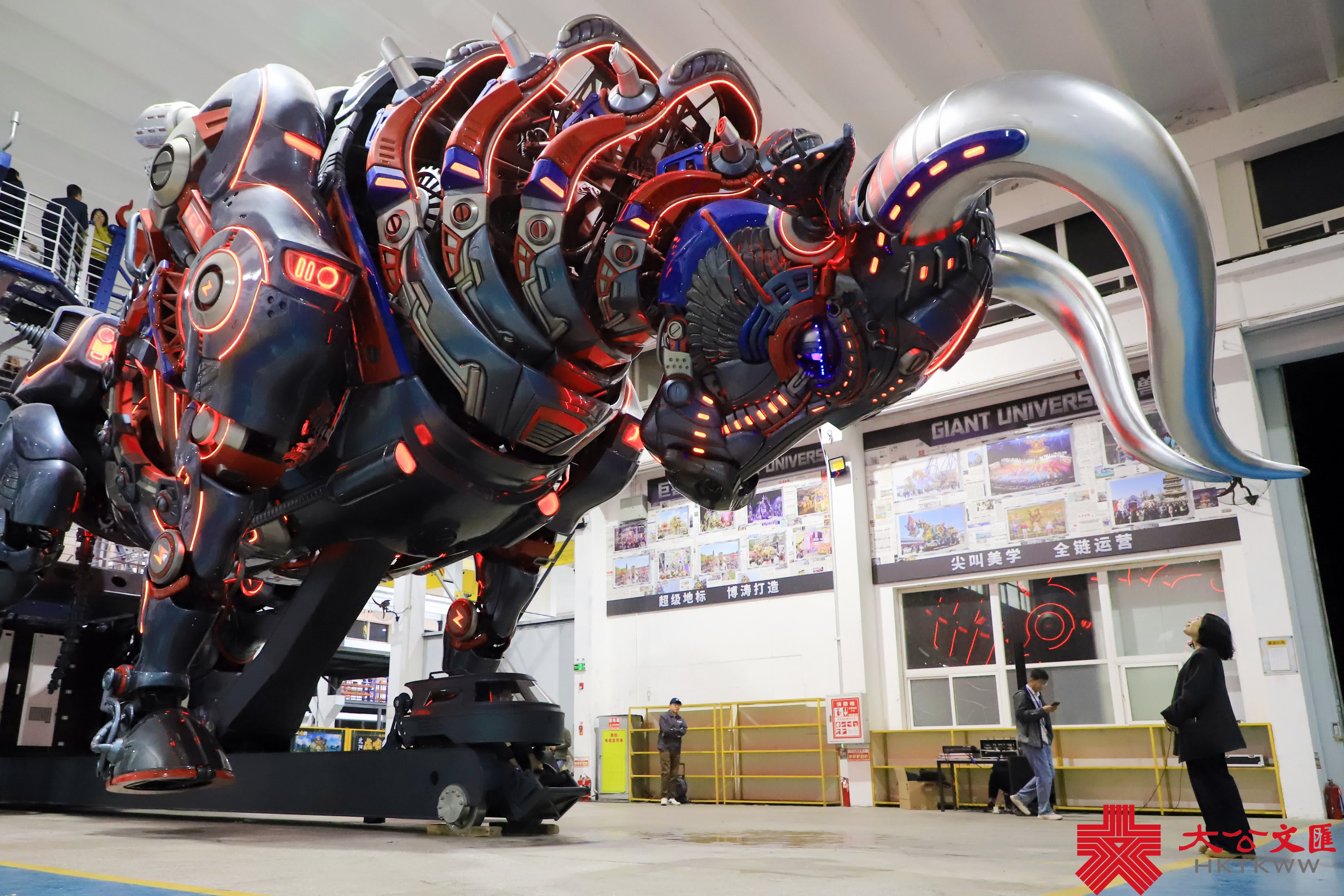 (大公文匯網記者宋偉大連報道)作為中國古代神話中極具神秘色彩的巨獸,夔牛承載着中華千年文化底蘊。由著名裝置藝術家肖迪及其團隊設計建造的夔牛,將這一遠古神獸以機械藝術裝置的形式重現於世。