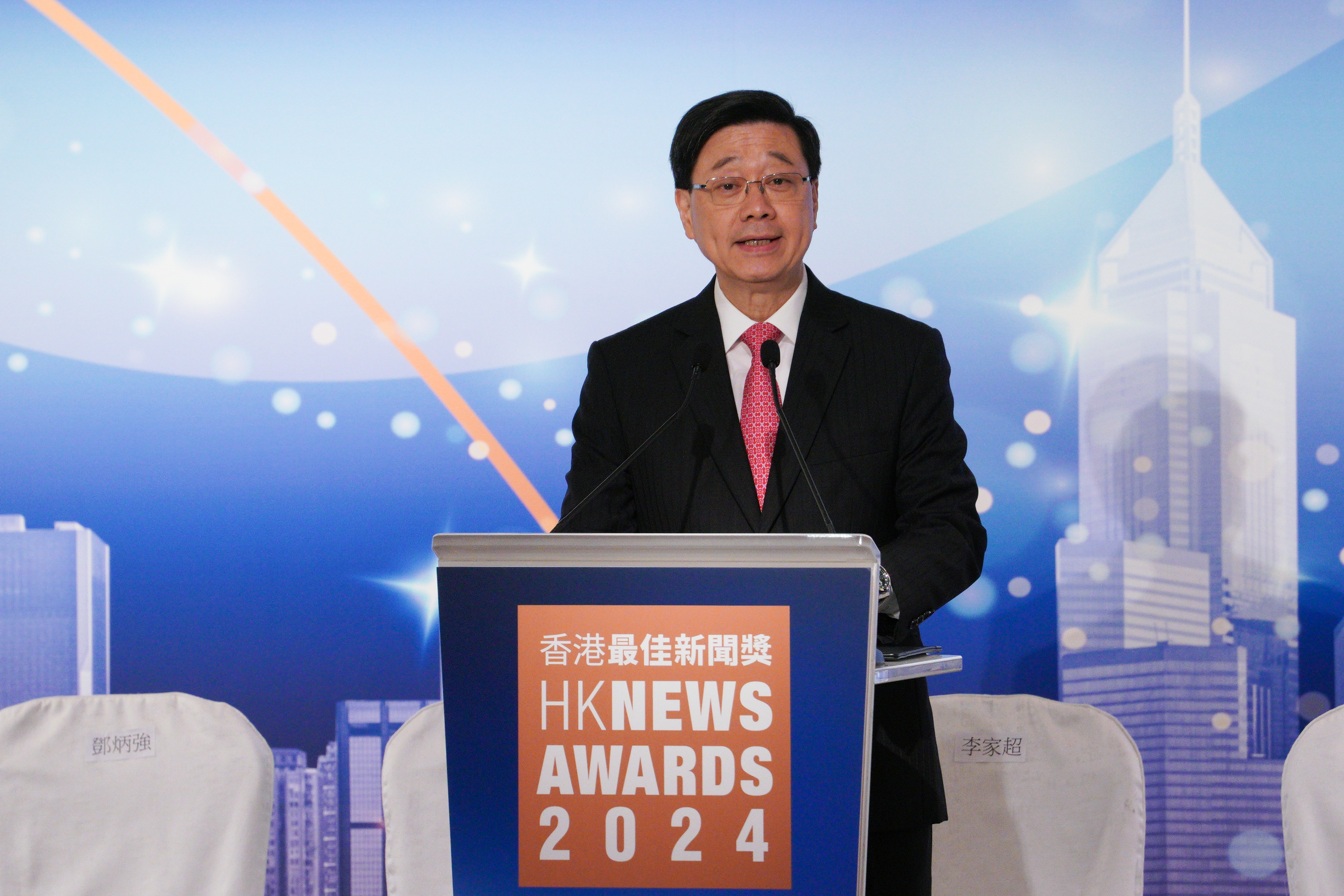 行政長官李家超致辭表示,每一位堅守崗位、履職盡責的新聞工作者的專業報道,都對社會發展至關重要。香港的新聞工作意義重大,能讓市民了解香港家園的共同事務,培養對社會的承擔意識,亦能幫助政府知悉社會意見,以便制定的各項政策更加精準、貼合民生實際。李家超鼓勵業界不偏不倚地報道社會問題,保持客觀公正的立場,確保新聞報道的真實性和公信力。