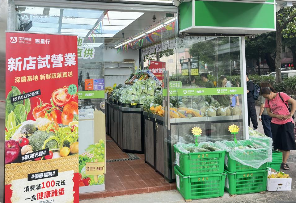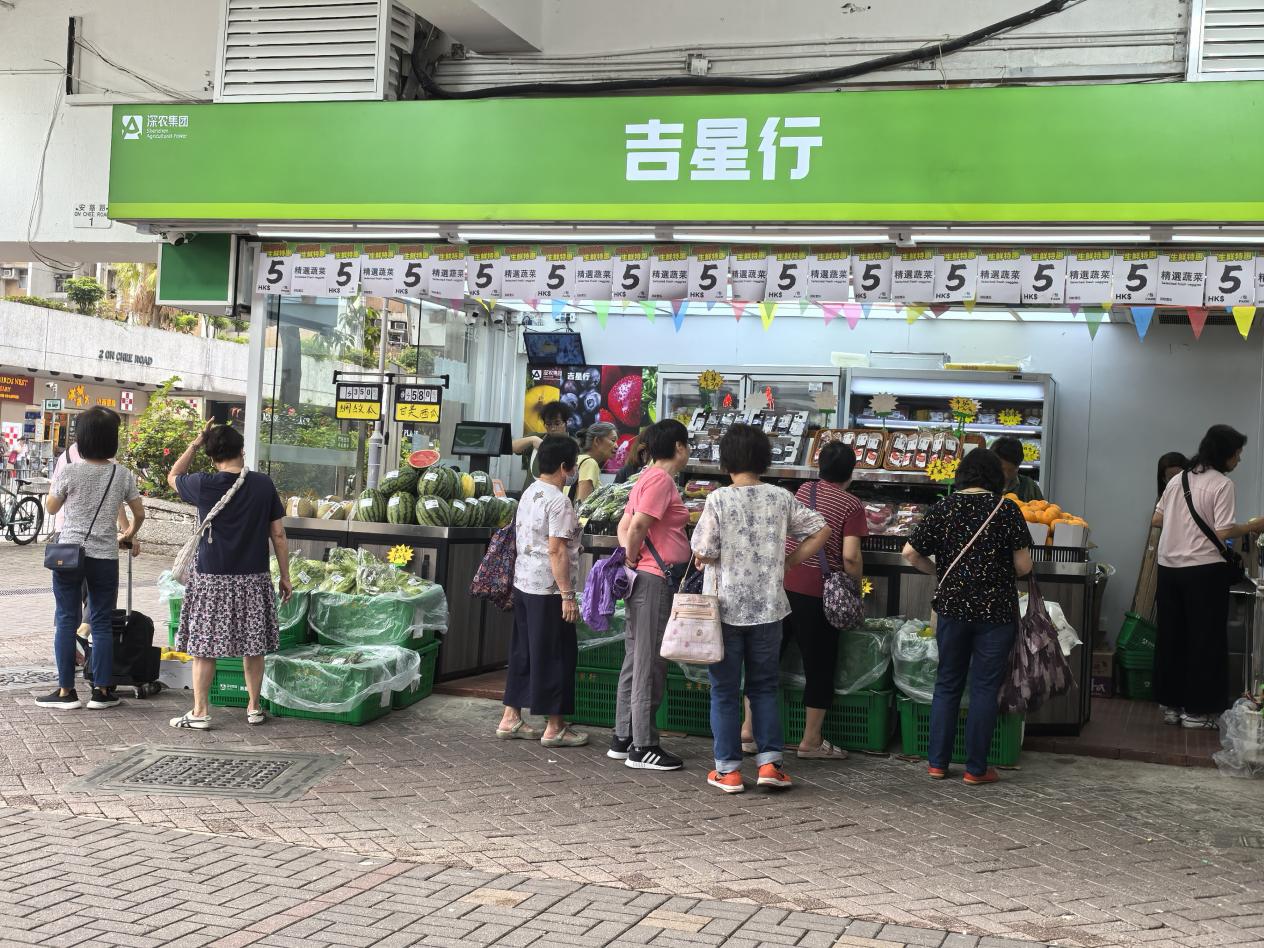 (大公文匯網 記者 胡永愛)5月8日,位於香港大埔區安慈路1號的「吉星行」海寶花園店開啟試營業。記者在現場看到,不少香港民眾早起購買新鮮的蔬菜、水果等農產品。據悉,這是深農集團旗下的深港蔬菜貿易有限公司精準對接周邊居民需求推出的農產品自營店,旨在加快推進香港市場的銷售終端布局。