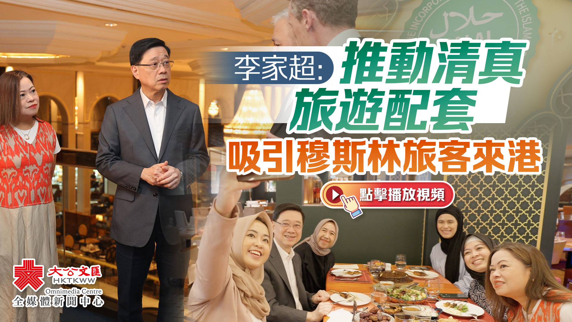 李家超在去年施政報告提到要開拓中東和東盟旅客客源,政府會締造對旅客友善環境,提升穆斯林友善的旅遊配套,包括整合提供清真食品的餐廳名單。截至今年4月中,獲香港回教信託基金總會認證的清真餐廳數目由去年初約100間大幅增加至超過170間,獲「新月評等」穆斯林友善評級的酒店有61間酒店,景點和會展場地有5個,其中昂坪360、海洋公園和灣仔會展已獲評為「黃金級認證景點/會展場地」。