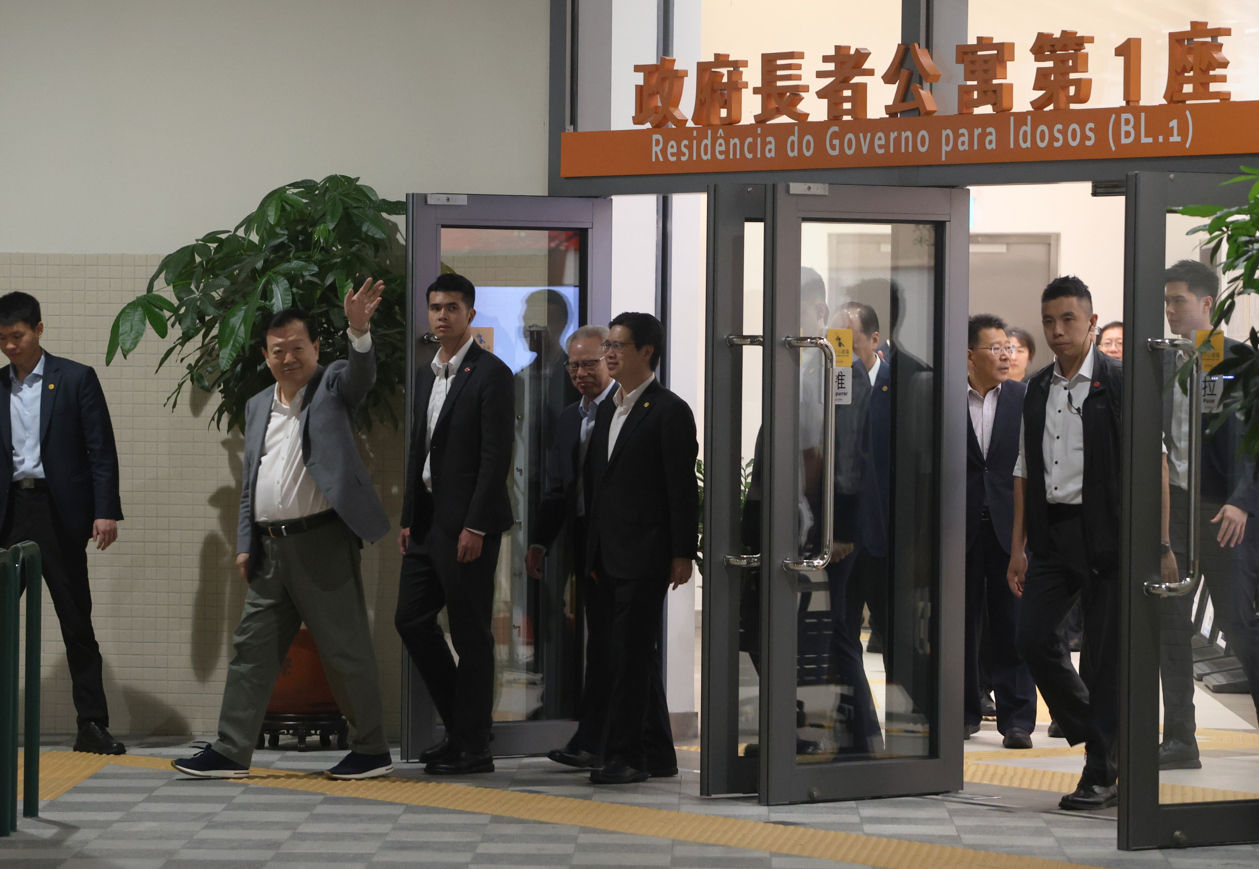 夏寶龍與老一輩愛國愛澳人士見面約1個小時。上午約9時40分,夏寶龍走出長者公寓門口,乘坐專車離開,上車前後,他兩次向在場傳媒揮手致意。有酒樓人員表示,這段時間酒樓照常開放營業,形容夏主任「很親民」。