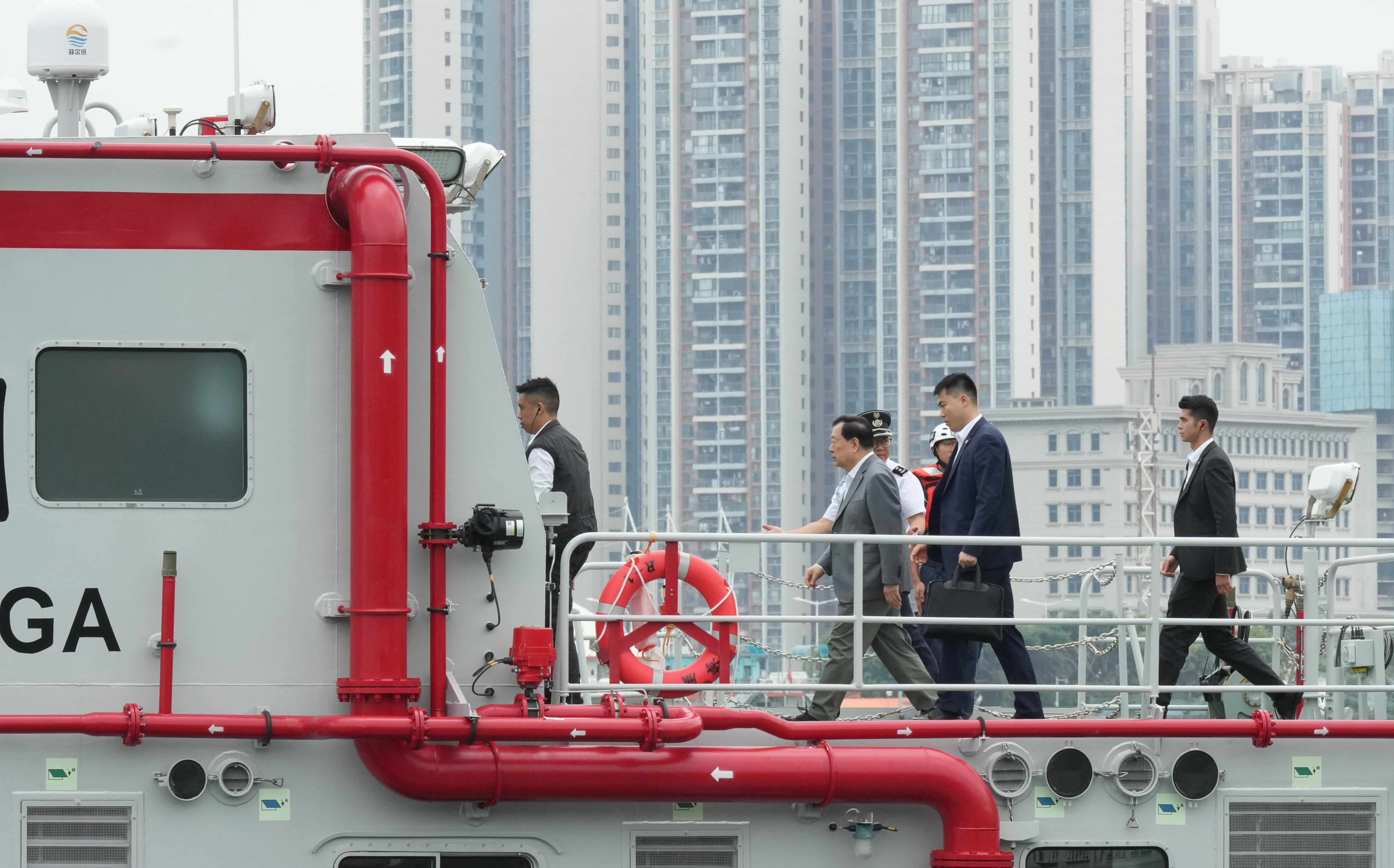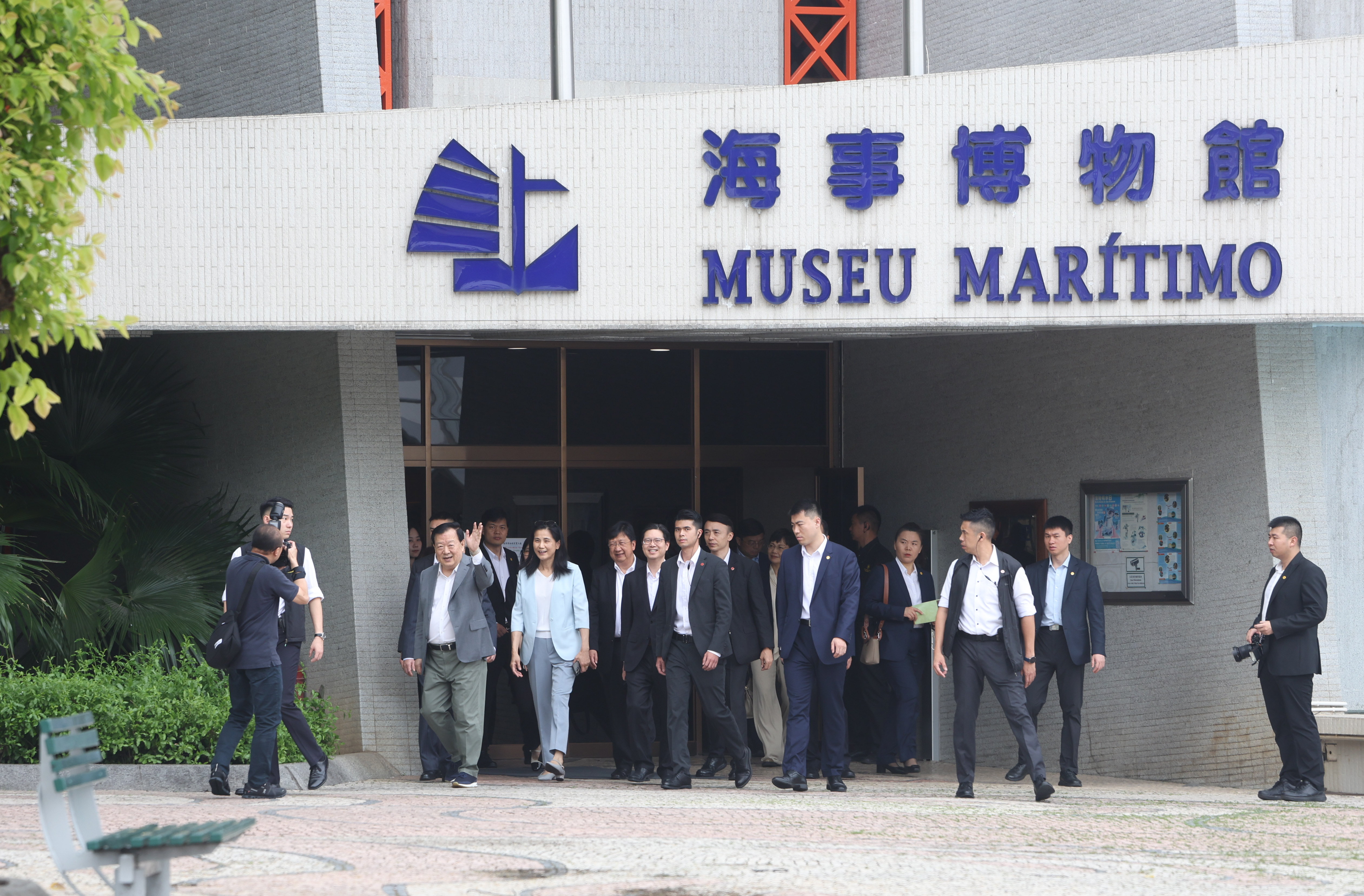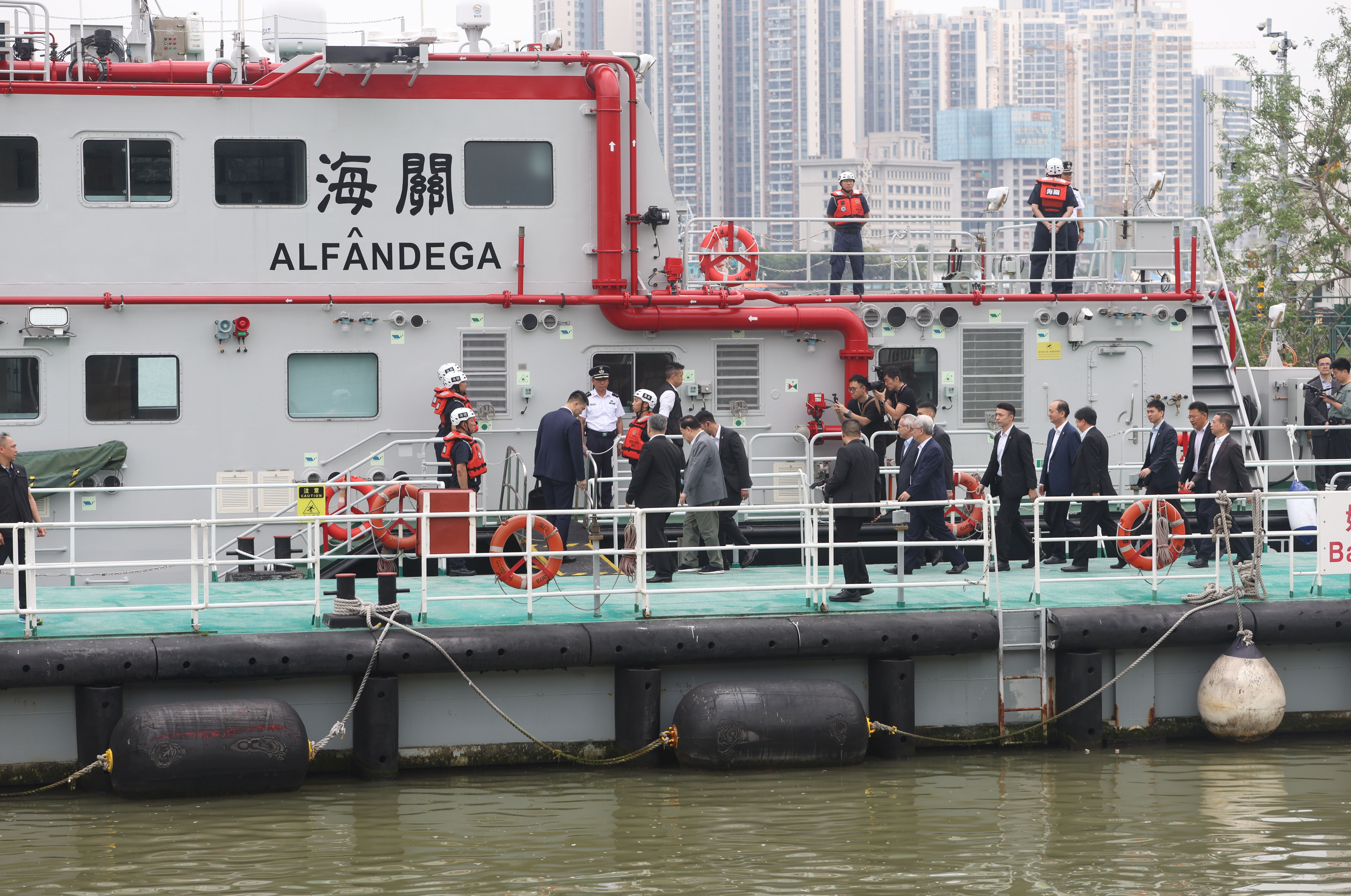 夏寶龍與老一輩愛國愛澳人士見面飲早茶後,前往媽閣廟、海事博物館參觀,隨後在對面媽閣碼頭登上澳門海關最新的救援船。