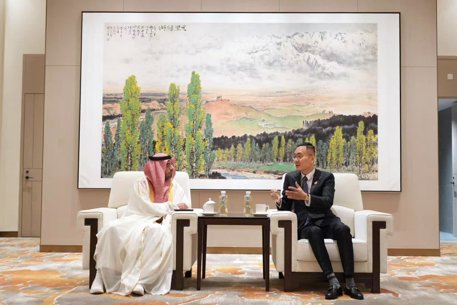 簽約儀式後,沙特國家工業發展中心執行副主任Eng.Khalid Al-Homoud一行與天風國際展開進一步深入會談,沙特駐華大使館商務處商務參贊錢大為博士出席會談。