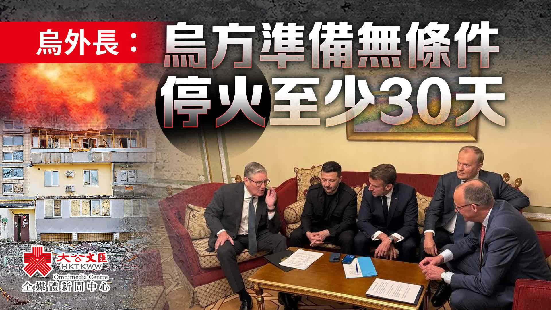 瑟比加表示,烏克蘭和所有盟友準備好從12日開始在陸地、空中和海上實現至少30天的完全無條件停火。