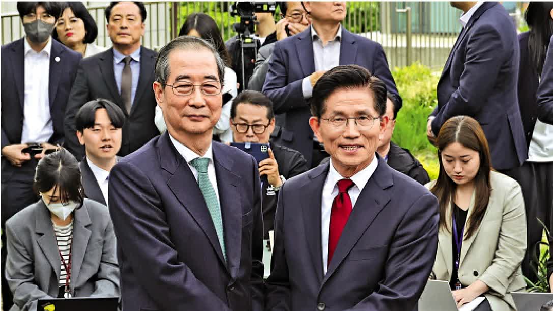 大公報綜合韓聯社、美聯社報道,韓國執政黨國民力量黨10日上演一系列鬧劇。當天凌晨,國民力量黨宣布臨陣換將,取消贏得黨內初選的總統候選人金文洙的候選人資格,推舉前總理韓德洙代表國民力量黨參選,並立即為無黨籍的韓德洙辦理入黨及總統候選人登記程序。但當天晚上,國民力量黨黨員投票否決總統候選人更換方案,金文洙的候選人資格即刻恢復,預計11日正式登記成為大選總統候選人。