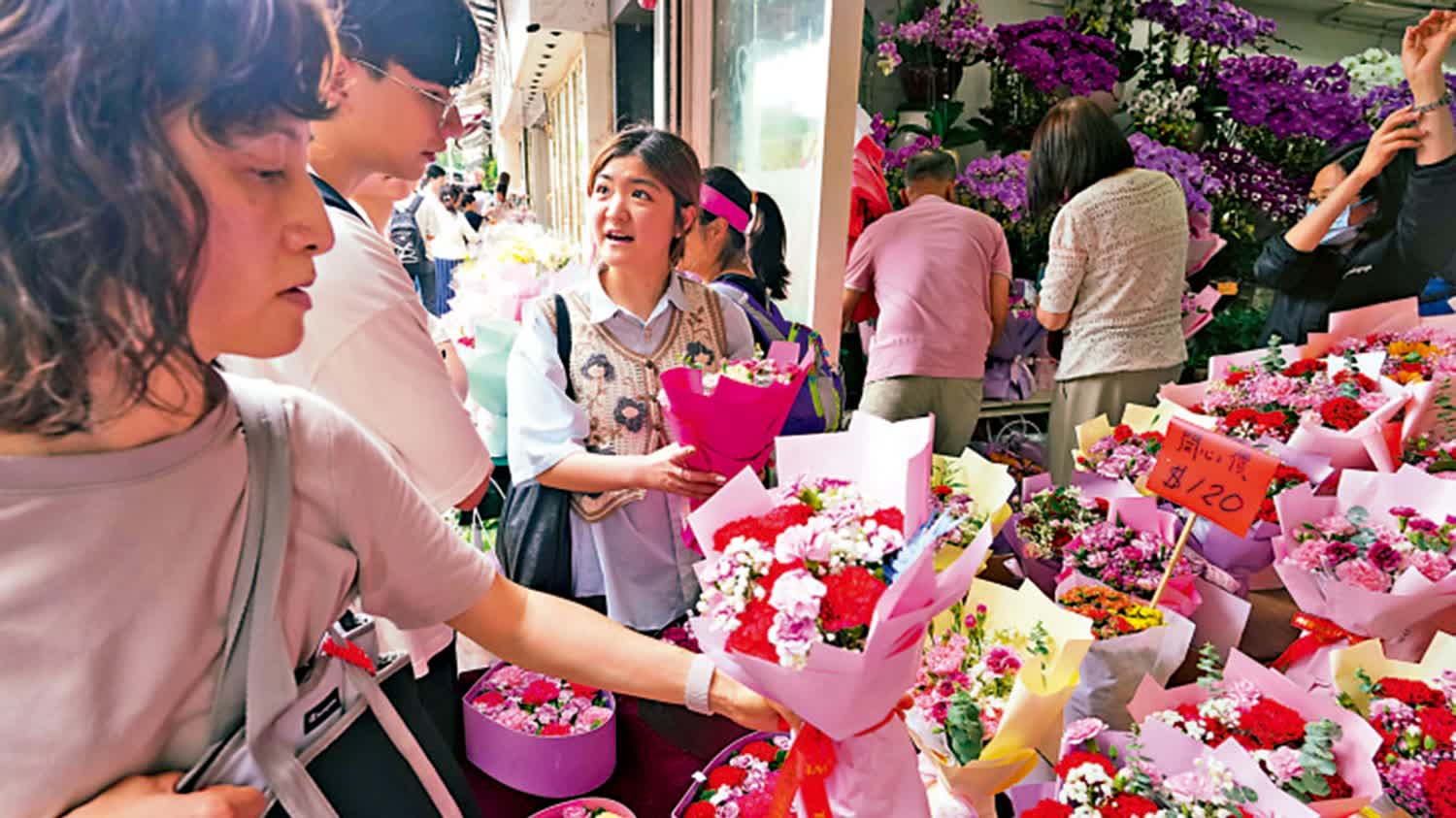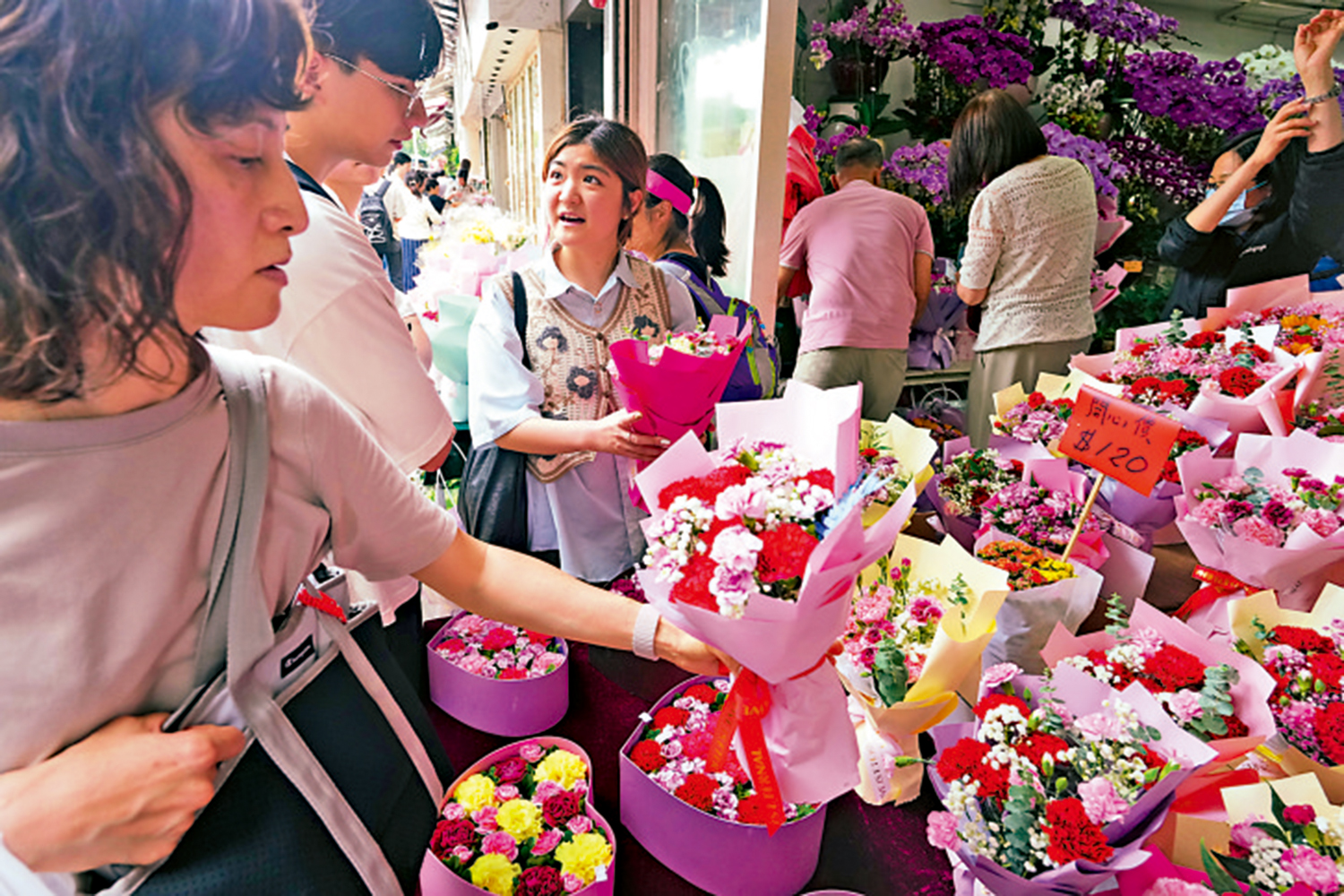香港鮮花零售業協會主席謝黃小燕向大公報記者說,今年花價整體與去年相若,大家多數仍會選擇康乃馨、百合,加上玫瑰或滿天星的花束,價格在三、四百元至千元左右。