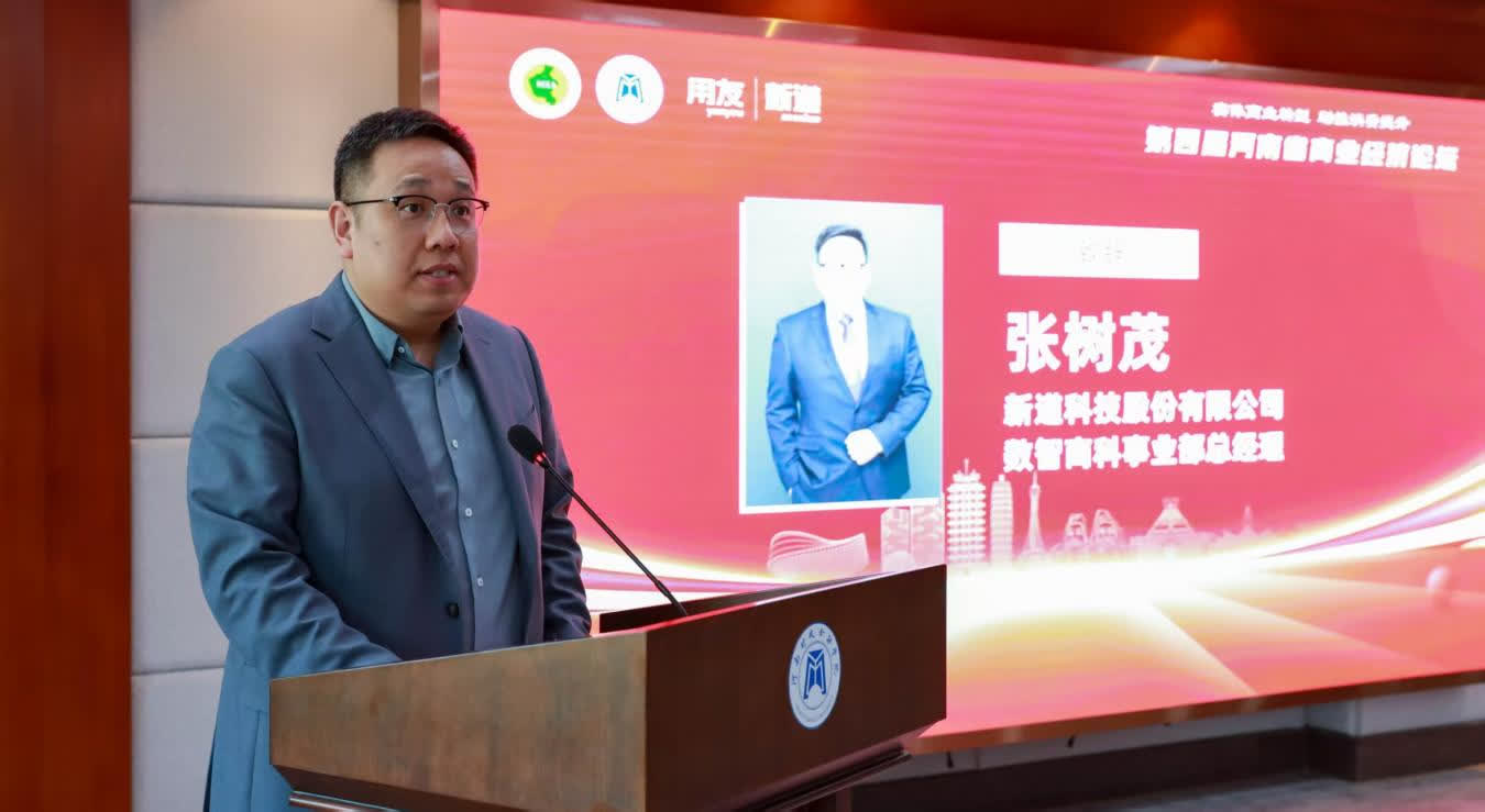 新道科技股份有限公司數智商科事業部總經理張樹茂代表協辦方致辭,他從企業角度出發,分享了新道科技在助力實體商業轉型方面的經驗與願景。
