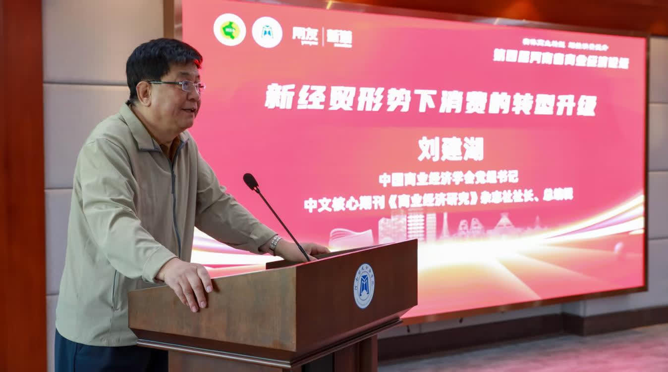 主旨演講環節由河南財政金融學院經貿學院院長徐冉教授主持。劉建湖教授作題為「新經貿形勢下消費的轉型升級」的主旨演講。他具體分析了當前新經貿形勢特點、商業轉型升級路徑、國內消費升級趨勢,以及對河南省的政策策略啟示和思考。他提出,當前全球經貿格局在國際環境變化和國內經濟轉型需求的雙重作用下已經並正在發生深刻變革。國際上,全球產業鏈重構、綠色貿易壁壘興起、數字經濟重塑經貿規則;國內消費結構升級、區域協調發展需求凸顯、科技創新驅動作用增強。在此背景下,我國商業轉型升級和消費結構優化需要通過數字經濟賦能、綠色轉型發展和消費體驗重構三條路徑進行,以推動我國商業經濟和消費經濟從「生存型」向「發展型」躍遷。