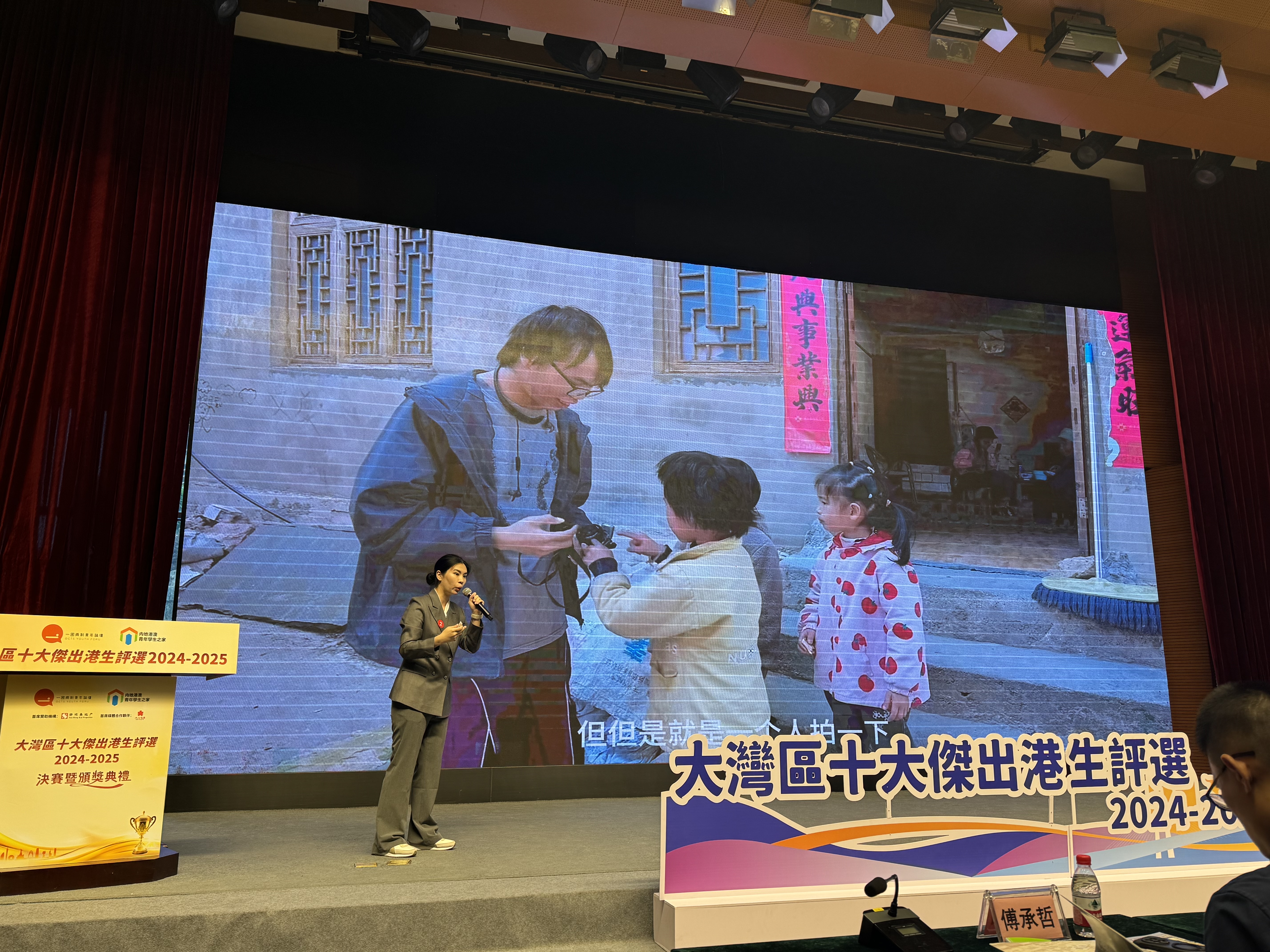獲得「公益實踐獎」一等獎、此次獲選「大灣區十大傑出港生」的譚明麗,是廣州美術學院的學生。她兩年前到貴州偏遠山村研學時,發掘了一位聽障小女孩洲媛的拍攝天賦。洲媛無父無母,與爺爺奶奶相依為命,還患有聽障,村裏人一度對她有成見。譚明麗將手上的相機交給洲媛,發現她拍出的照片,角度獨特,很有藝術感。
