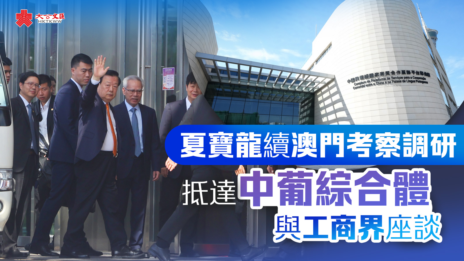 (大公文匯全媒體特派記者 吳俊宏 澳門報道)中央港澳工作辦公室主任、國務院港澳事務辦公室主任夏寶龍今日(12日)繼續在澳門第五日的考察調研行程,上午約9時30分,夏寶龍抵達中國與葡語國家商貿合作服務平台綜合體,與澳門工商界座談。