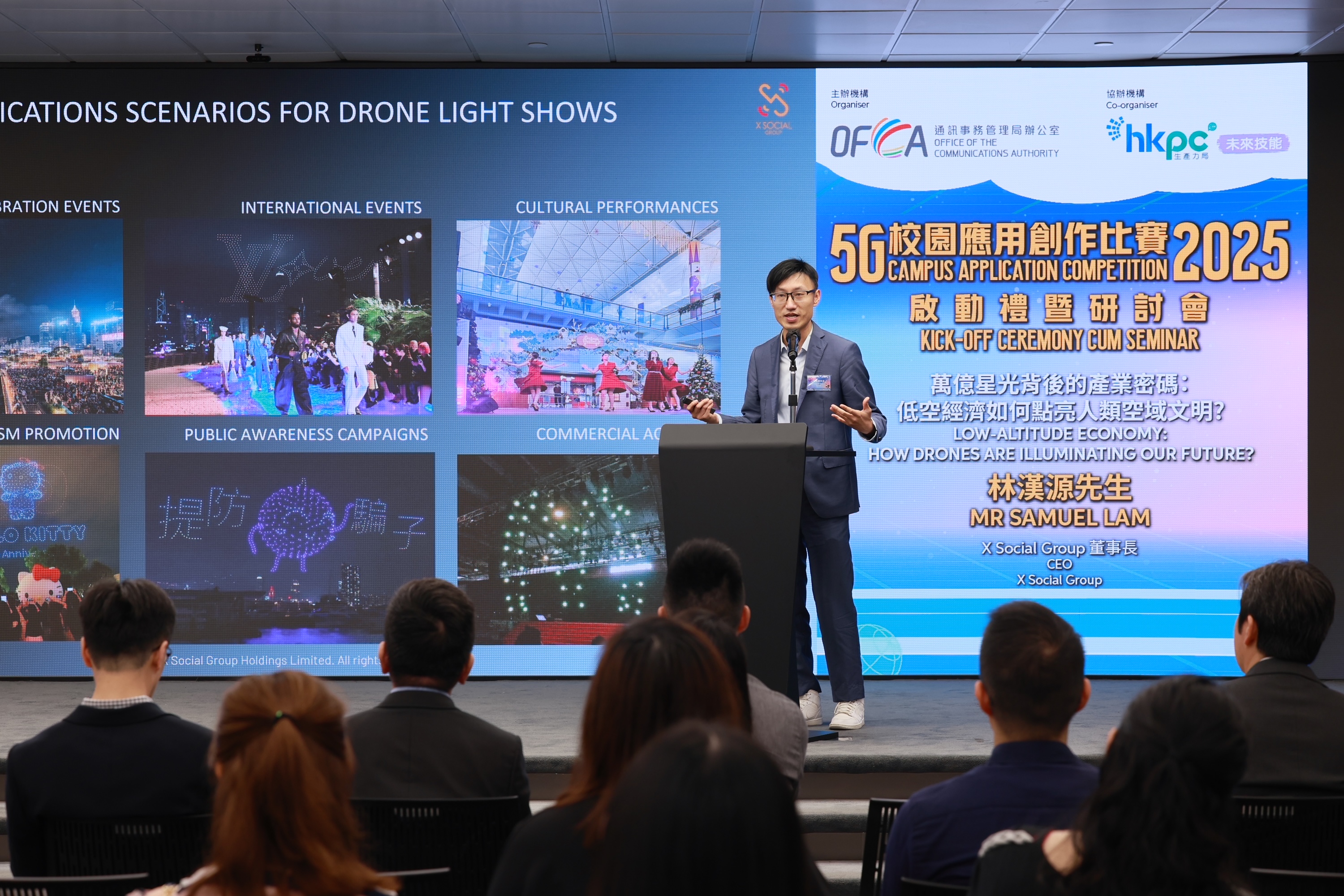 通訊事務總監梁仲賢先生在啟動禮上致歡迎辭,並與協辦機構代表香港生產力促進局首席數碼總監黎少斌先生主持啟動儀式。大會亦邀得創新科技界及教育界資深從業員為演講嘉賓,為出席啟動禮的學生及與會者介紹5G與低空經濟的應用及未來發展趨勢。此外,是次比賽亦獲得多間通訊業界及教育機構支持。