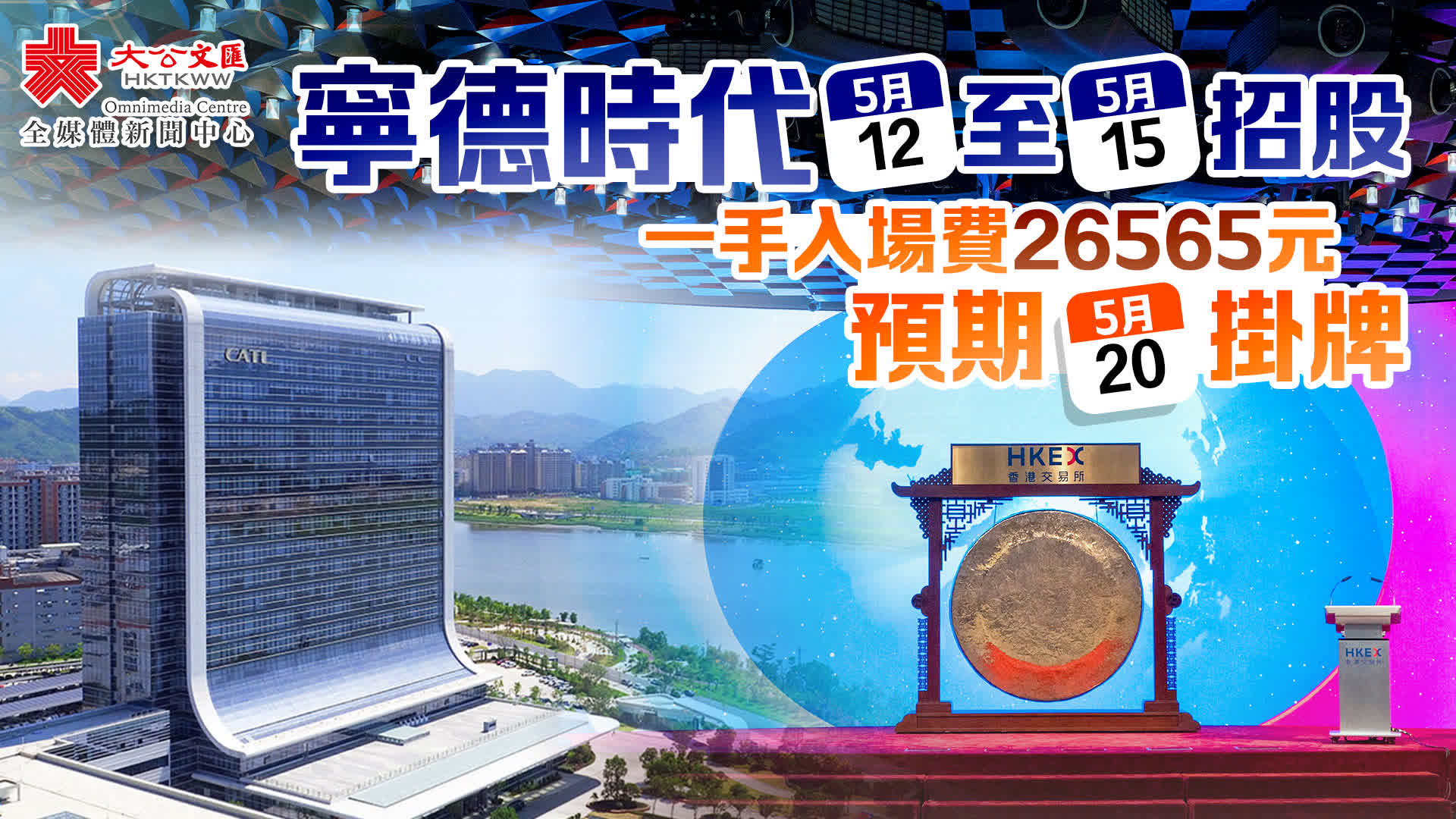 寧德時代預期將於5月20日掛牌。美銀證券、中金及中信建投及摩通為聯席保薦人。