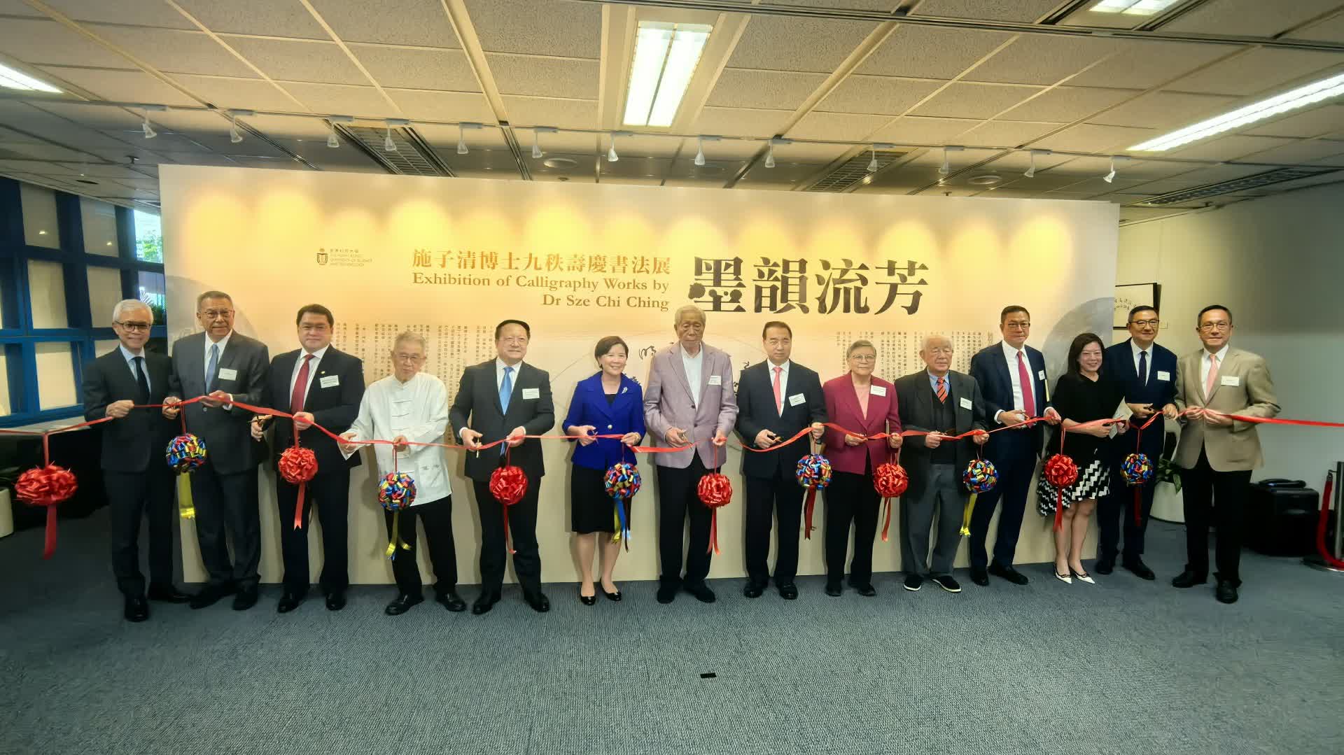 (大公報記者 李兆桐)「墨韻流芳」施子清九秩壽慶書法展今日(12日)於香港科技大學曾肇添展藝廳舉行開幕禮。是次展覽在港科大李兆基圖書館展出涵蓋多幅香港大紫荊勳賢、中國書協香港分會主席施子清的書法作品,包括古詩詞名句及施子清個人創作,展現其豐富的文化內涵與情感。