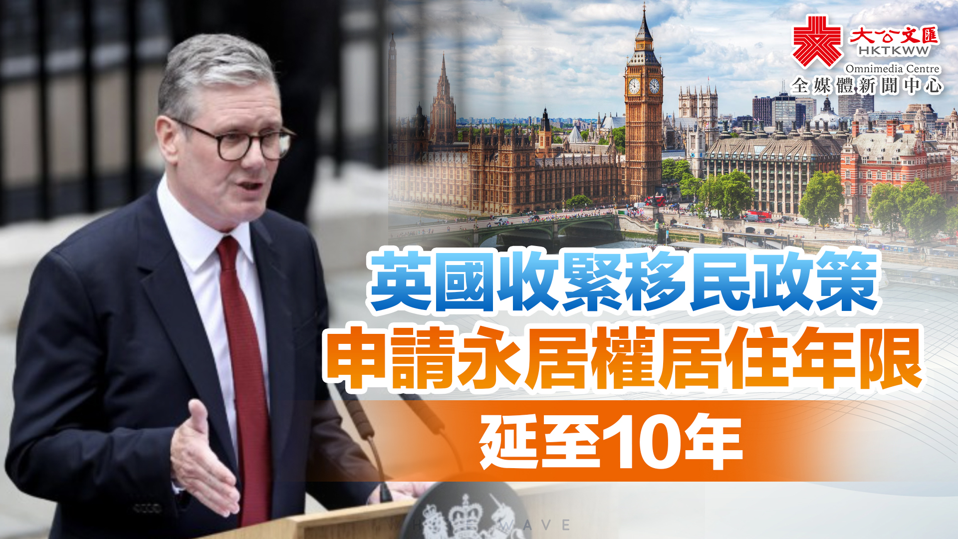 大公文匯全媒體報道,英國首相斯塔默(Keir Starmer,又譯施紀賢)當地時間5月12日宣布收緊移民措施,他在唐寧街首相府公布,申請英國永久居留權的最低居住年限,將從5年延長至10年。