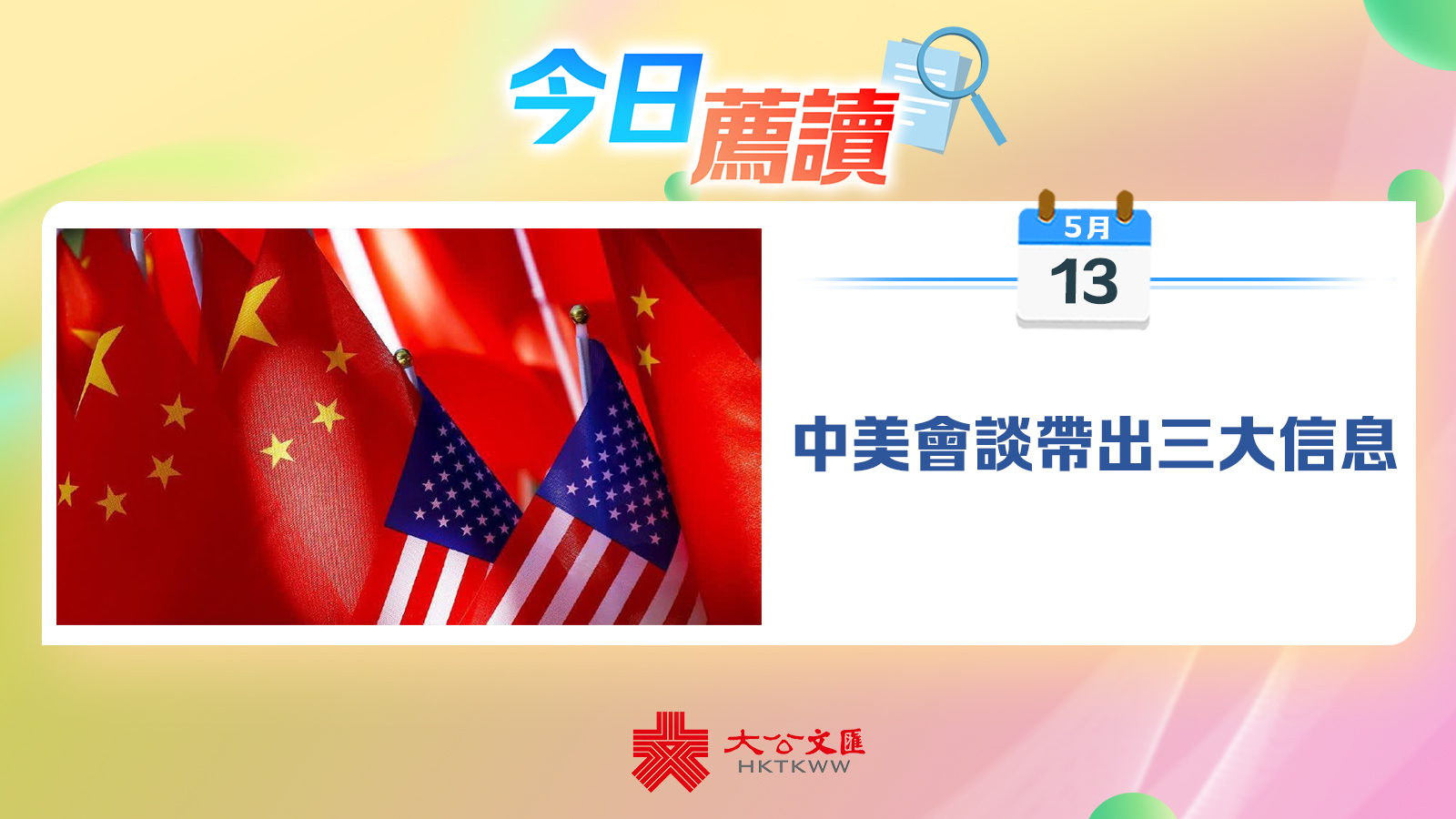 大公報頭版報道。當地時間5月10日至11日,中美經貿中方牽頭人、國務院副總理何立峰與美方牽頭人、美國財政部長貝森特和貿易代表格里爾在瑞士日內瓦舉行中美經貿高層會談。雙方圍繞落實今年1月17日中美元首通話重要共識進行了坦誠、深入、具有建設性的溝通,在經貿領域達成一系列重要共識。當地時間5月12日上午9時,雙方發布《中美日內瓦經貿會談聯合聲明》。此次會談帶出三大信息。點此閱讀詳情